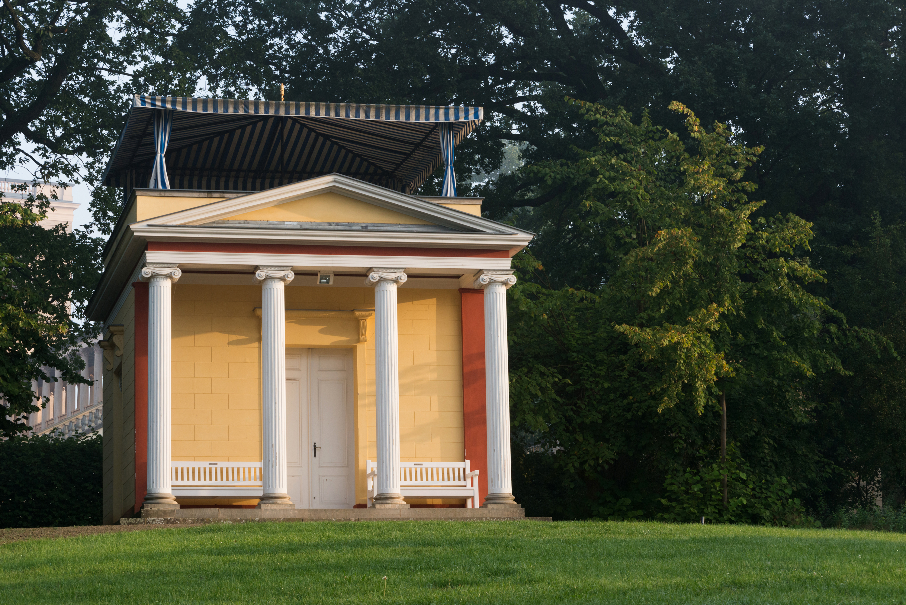 Idyllische Ruhe im Grünen, spektakuläre Aussichten und ein imposantes Stück Italien: Der Pfingstberg mit Schloss Belvedere, Pomonatempel (Schinkels erstes realisiertes Bauwerk) und Lenné-Garten ist einer der schönsten Orte Potsdams. Inspiriert von seinen Reisen, beauftragt Friedrich Wilhelm IV die Errichtung des romantischen Prachtbaus (1847-1863).