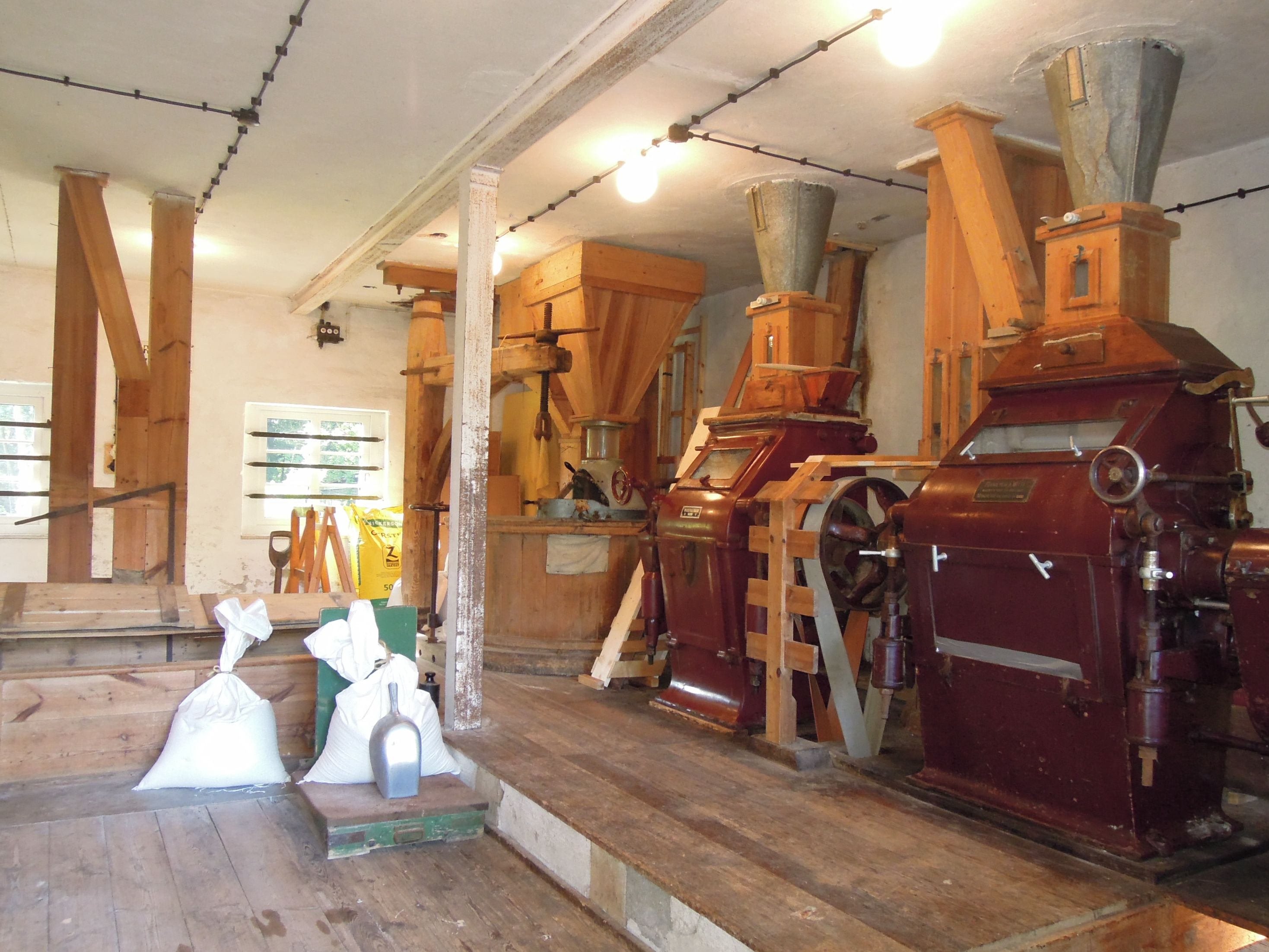 1928 als Wohnhaus mit Stall und Nebengebäuden errichtet, wurden 1948 Stall sowie Nebengebäude zu einer Motormühle umgebaut, die bis 1975 in Betrieb war. Sämtliche Maschinen sind im restaurierten Originalzustand vorhanden und funktionsfähig: Schrotgang, zwei Walzenstühle, Plansichter und diverse Reinigungsmaschinen. 2020 erfolgte die Wiederaufnahme des Geschäftsbetriebs als handwerklich produzierende Senfmühle und Getreidemühle für Vollkornmehle.