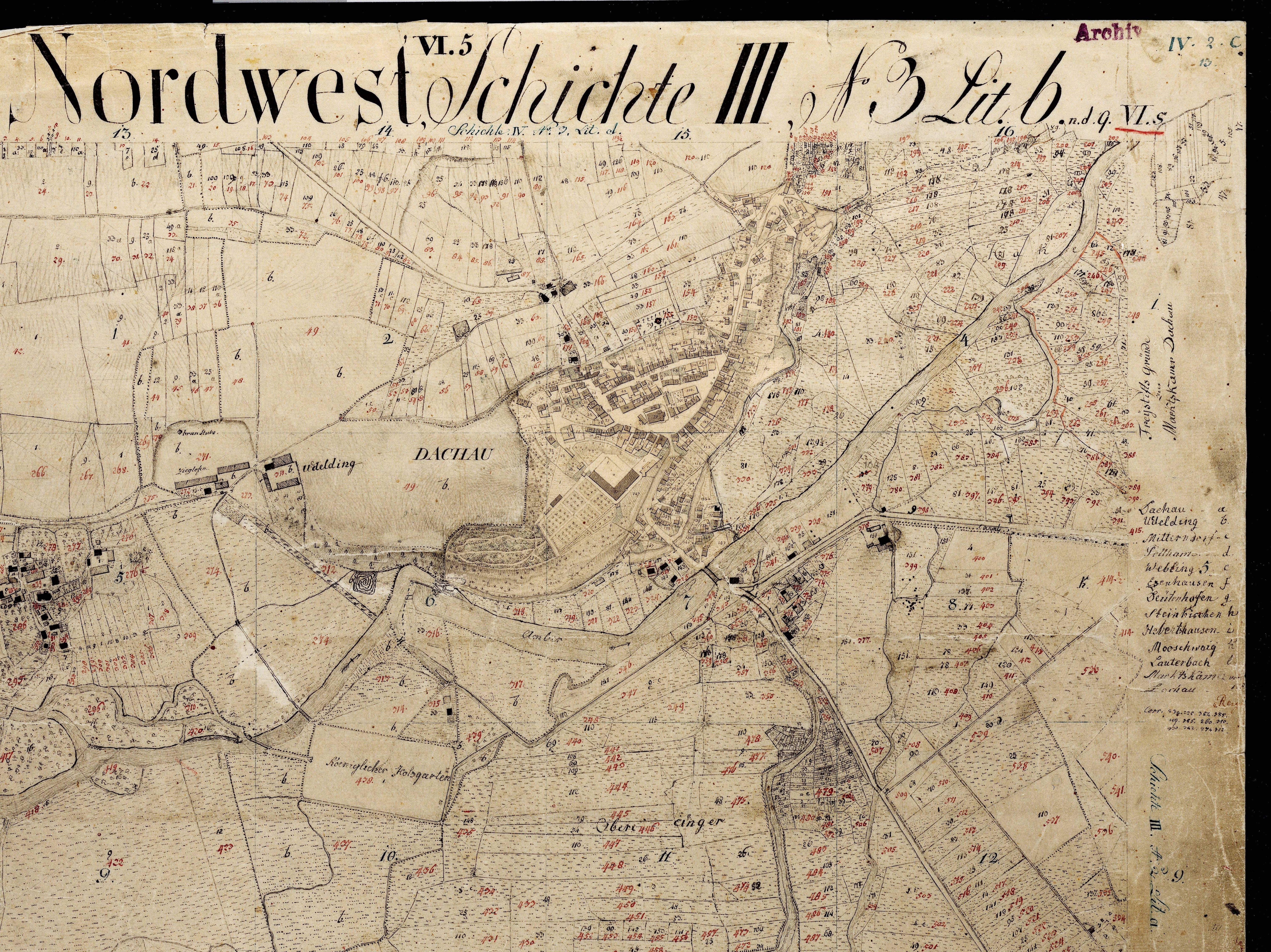 Die aus 26.634 Steinplatten bestehende, weltweit einzigartige Steinbibliothek steht seit 1980 unter Denkmalschutz. Die Ergebnisse der ersten flächendeckenden Grundstücksvermessung in Bayern wurden ab Beginn des 19. Jhs. bis weit in das 20. Jh. in diese Kalksteinplatten graviert. Der Vervielfältigung lag das 1798 von Aloys Senefelder (1771-1834) erfundene Steindruckverfahren zugrunde. Die Einsatzgebiete lagen im Druck von Flurkarten, Landkarten und Bildern.