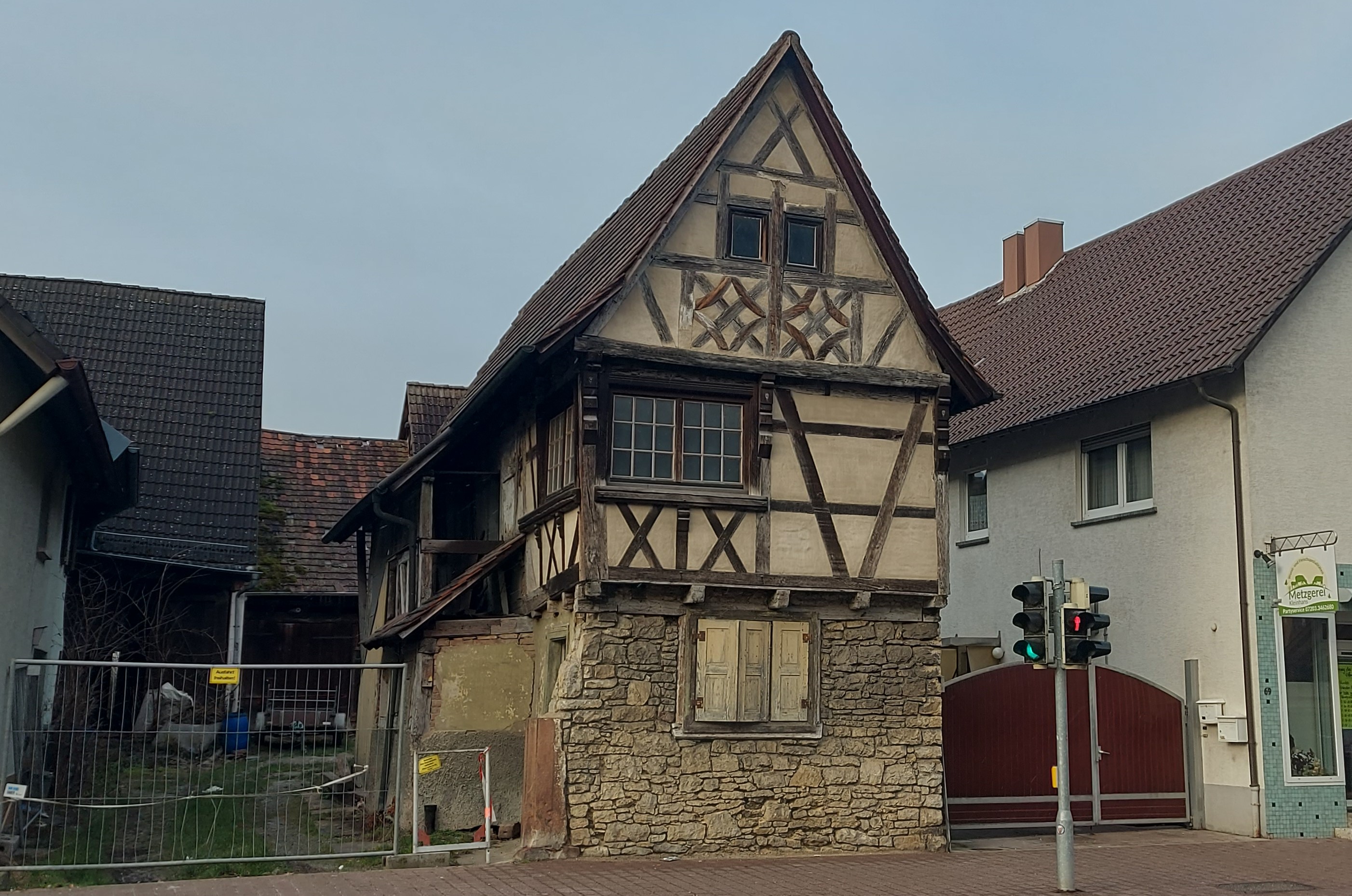 Wohnhaus mit Fachwerk aus dem 17. Jahrhundert über massivem Erdgeschoss, zur Straßenseite hin befindet sich ein Bruchsteinmauerwerk mit vorkragendem Obergeschoss. Es handelt sich um ein Zierfachwerk mit Fenstererker. Der Eingang befindet sich an der Längsseite und ist über Außentreppe zugänglich.