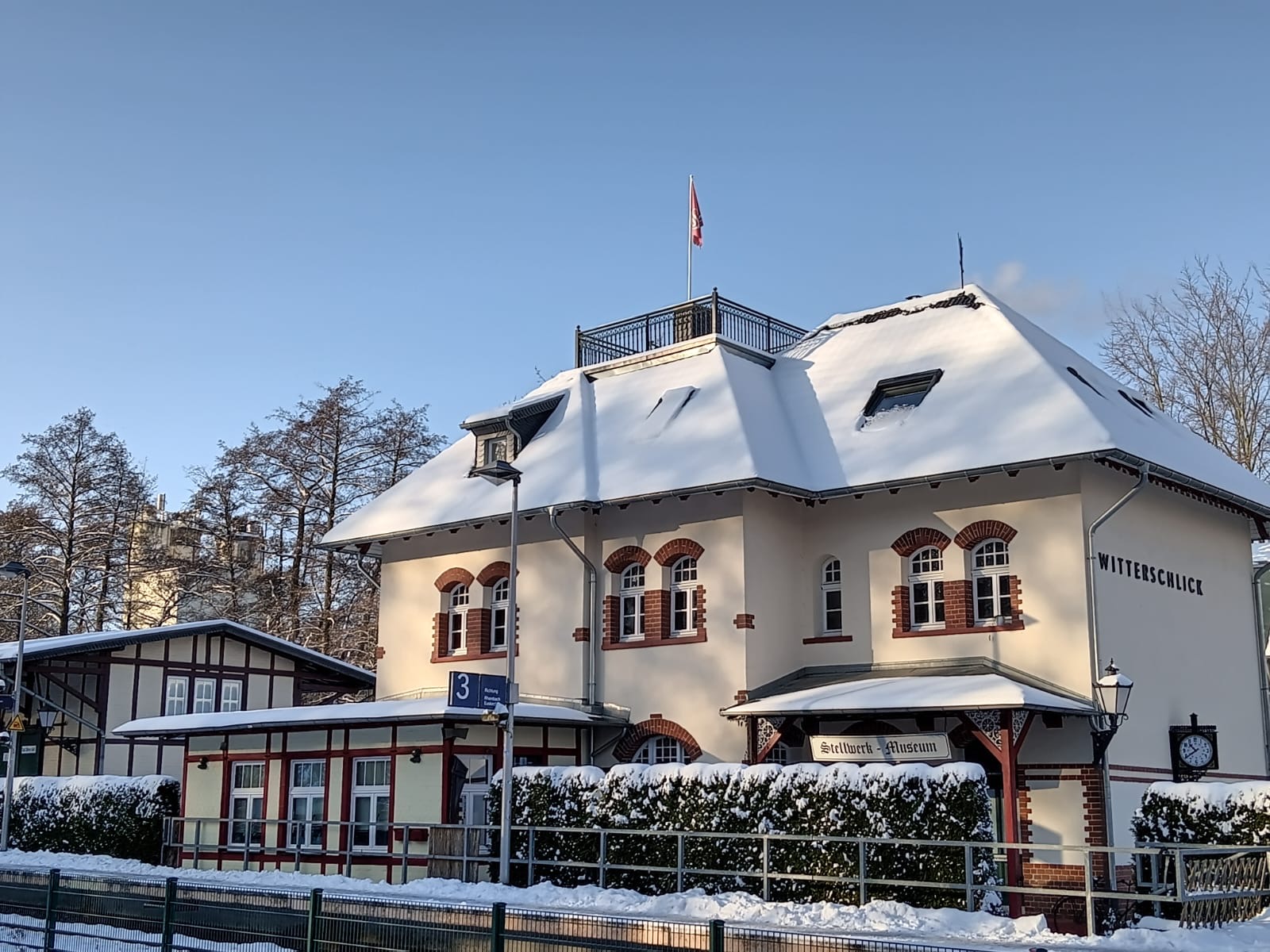 Der Bahnhof wurde 1903 erbaut. Seit 2004 befindet er sich in Privatbesitz von Albert und Annette Söhngen, die das Gebäude als Denkmal pflegen. Die Güterhalle ist seit 2009 eine Außenstelle des Standesamtes der Gemeinde Alfter. 2013 wurde das Stellwerk als Museum eröffnet. Zum Museum gehört neben dem Stellwerk ein kleine Schalterhalle. Eine Modellbahn wird simultan vom ehemaligen mechanischen Stellwerk bedient. Ein Jim-Knopf-Brunnen mit der umkreisenden Lok Emma vervollständigt das Ensemble.