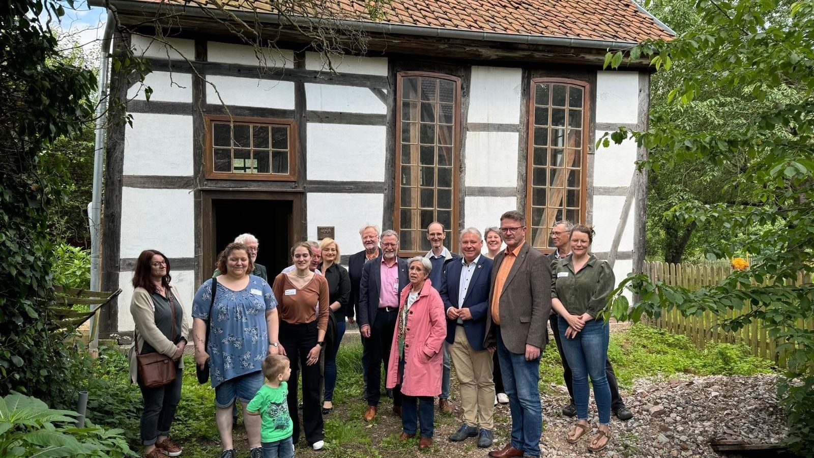 Im Februar 2024 konnte der Verein der Freundinnen und Freunde jüdischen Lebens die Synagoge in Harmuthsachsen erwerben. Seither ist dort schon eine Menge passiert. Dringend notwendige Schutz- und Erhaltungsmaßnahmen wurden bereits realisiert. In einem Workshop wurde ein Konzept erarbeitet, wie die Synagoge und das angrenzende Lehrerwohnhaus künftig genutzt werden sollen.