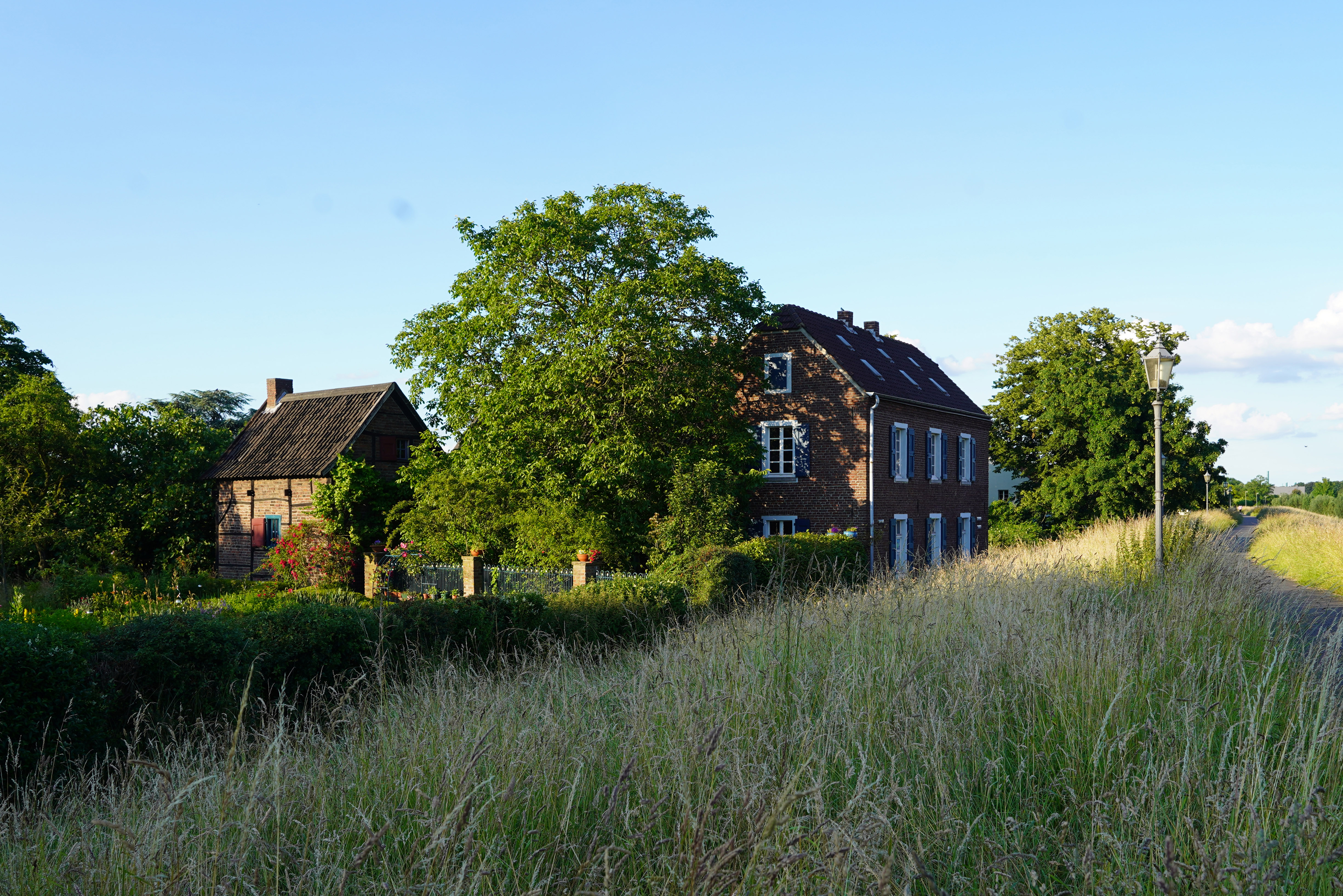 Der Nühlenhof liegt im Denkmalbereich des Deichdorfes Friemersheim, geschützt durch den Rheindeich und umgeben von historischen Streuobstwiesen. Der Bauergarten hat einen Grundriss in Form eines Kreuzweges mit einem Apfelbaum in der Mitte und eine Eibenlaube. Alle Wege sind mit Buchsbaum eingefasst. Von Hof und Garten gibt es es ein Ölgemälde von 1925 und eine Urkatasterkarte von 1830. Der Nühlenhof wird seit fünf Generationen in Familienbesitz erhalten.