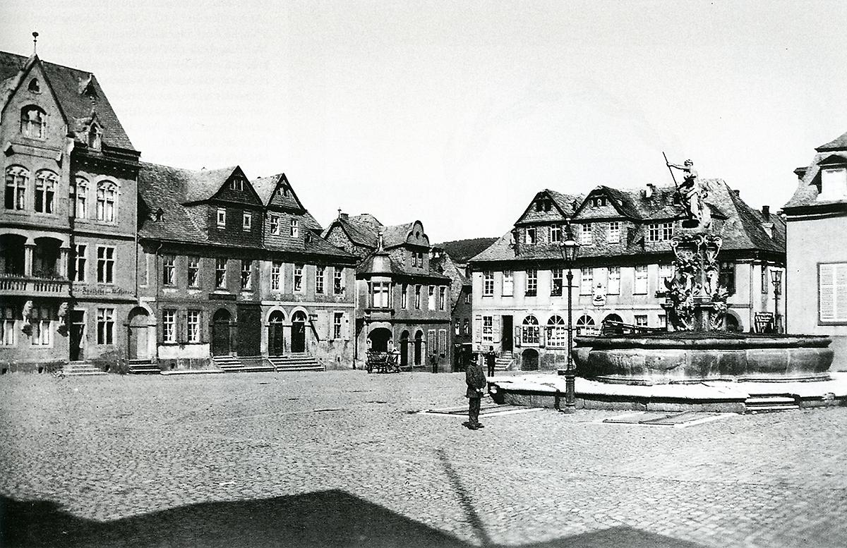 Die Planskizze von 1770 verzeichnet für den Platzwandblock drei Eigentümer, darunter zwei Gasthäuser. Die Fensterfolge des Obergeschosses ergibt eine Gesamtsymmetrie ohne die beiden rechten Außenachsen. Diese gehören zu einem eigenständigen, schmalen Bau an der Orangeriegasse. Bei den Erdgeschoss-Arkaden ist der breite Korbbogen eine neuere Zutat.