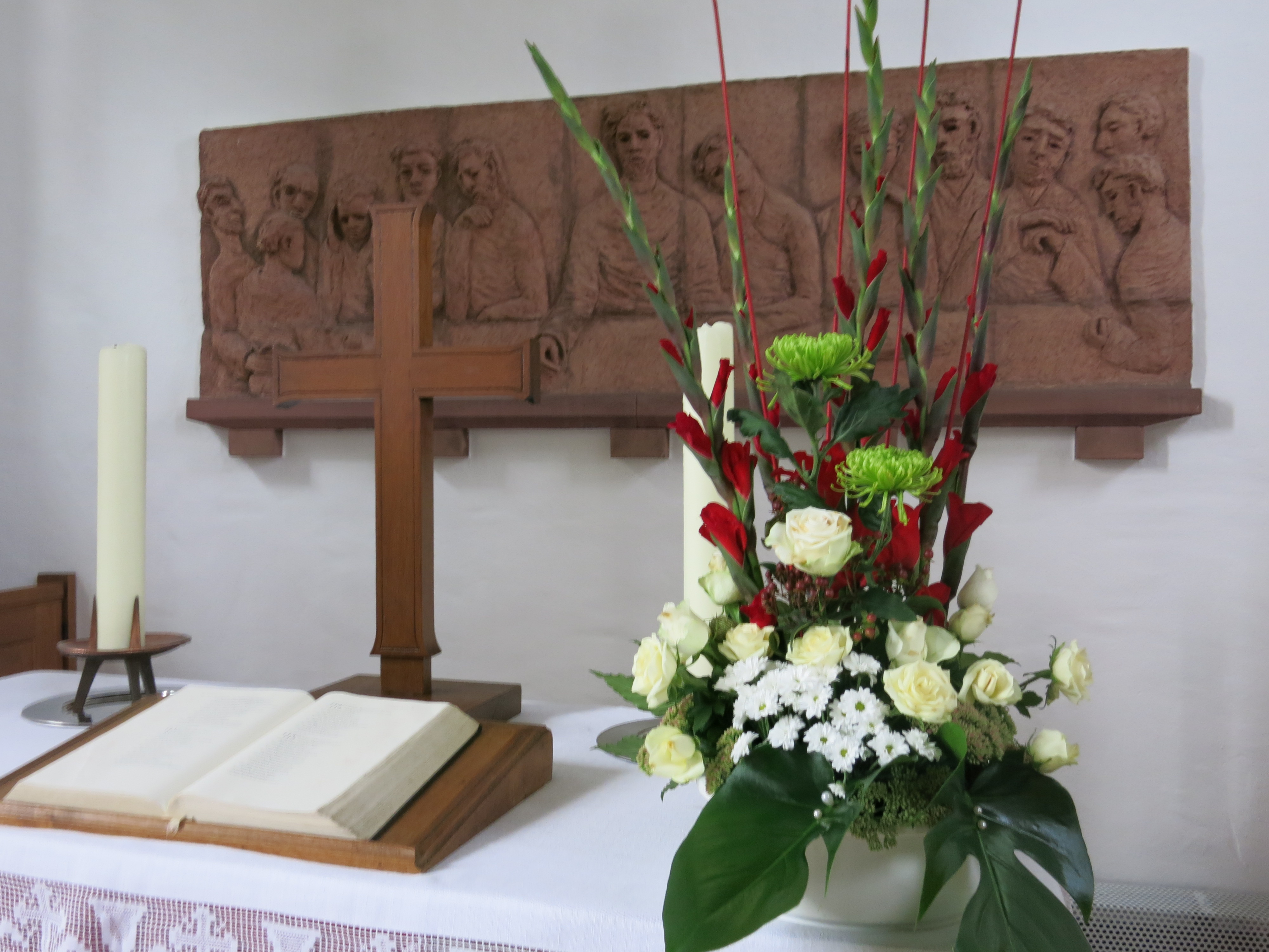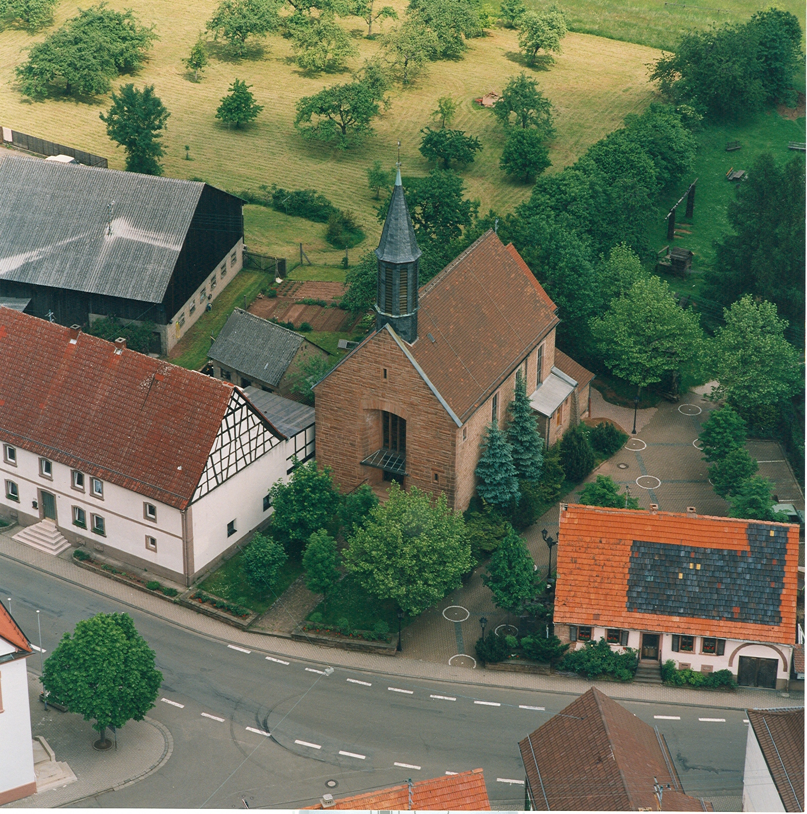 Baubeginn der unter Denkmalschutz stehenden Kirche war 1952, die Einweihung folgte 1954. Das Kirchenschiff ist etwa 20 m lang; im Innern ein kleiner Sandsteinquadersaal. Die bekannte Pfälzer Bildhauerin und Ehefrau des damaligen Pfarrers, Frau Welker-Stahel, schuf für die Kirche verschiedene Werke.
