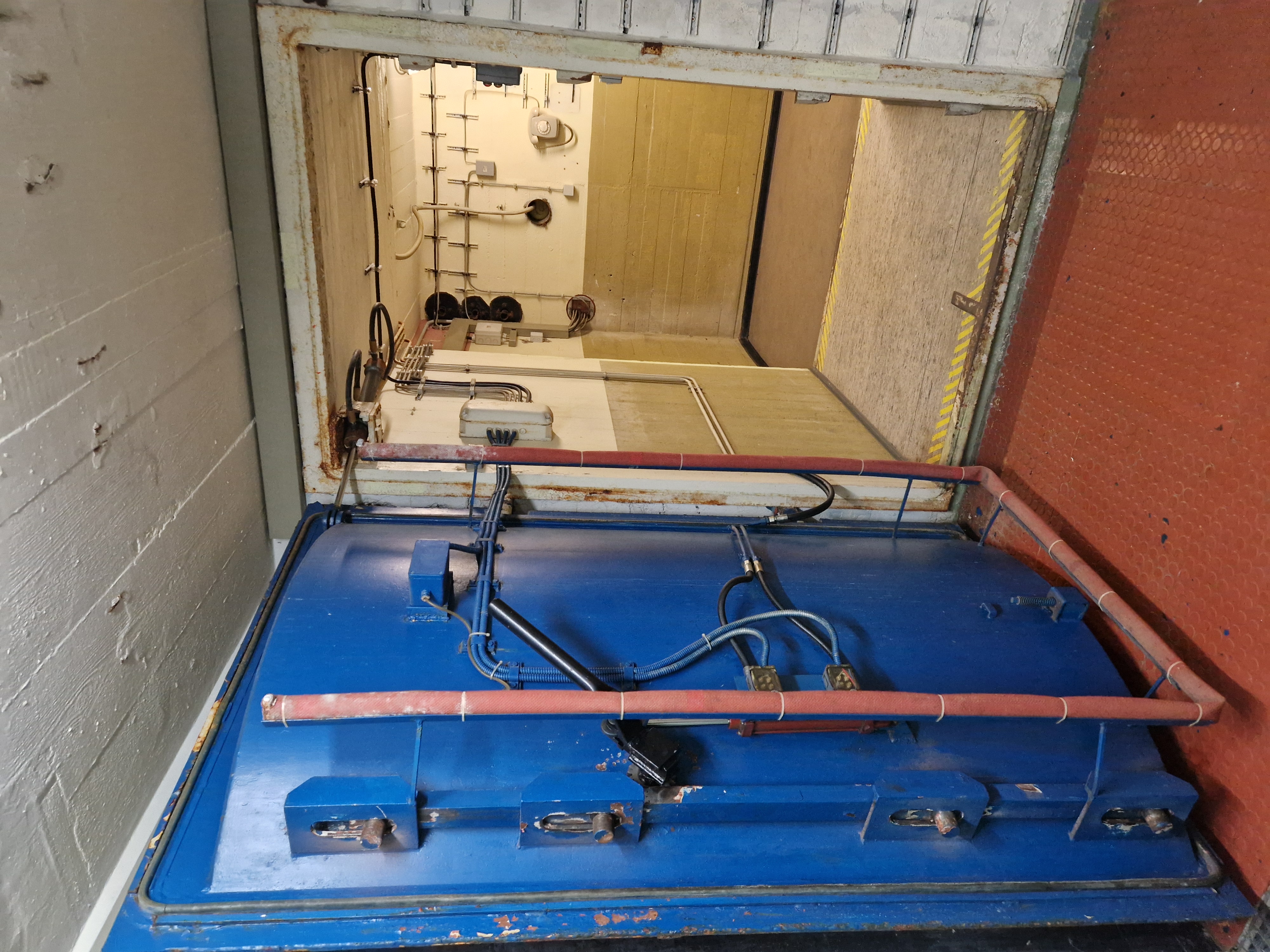 Der denkmalgeschützte Atomschutzbunker vom ehemaligen Warnamt IV in Meinerzhagen. Er misst 30 × 35 × 16 m und die Wände sind 3 m stark.