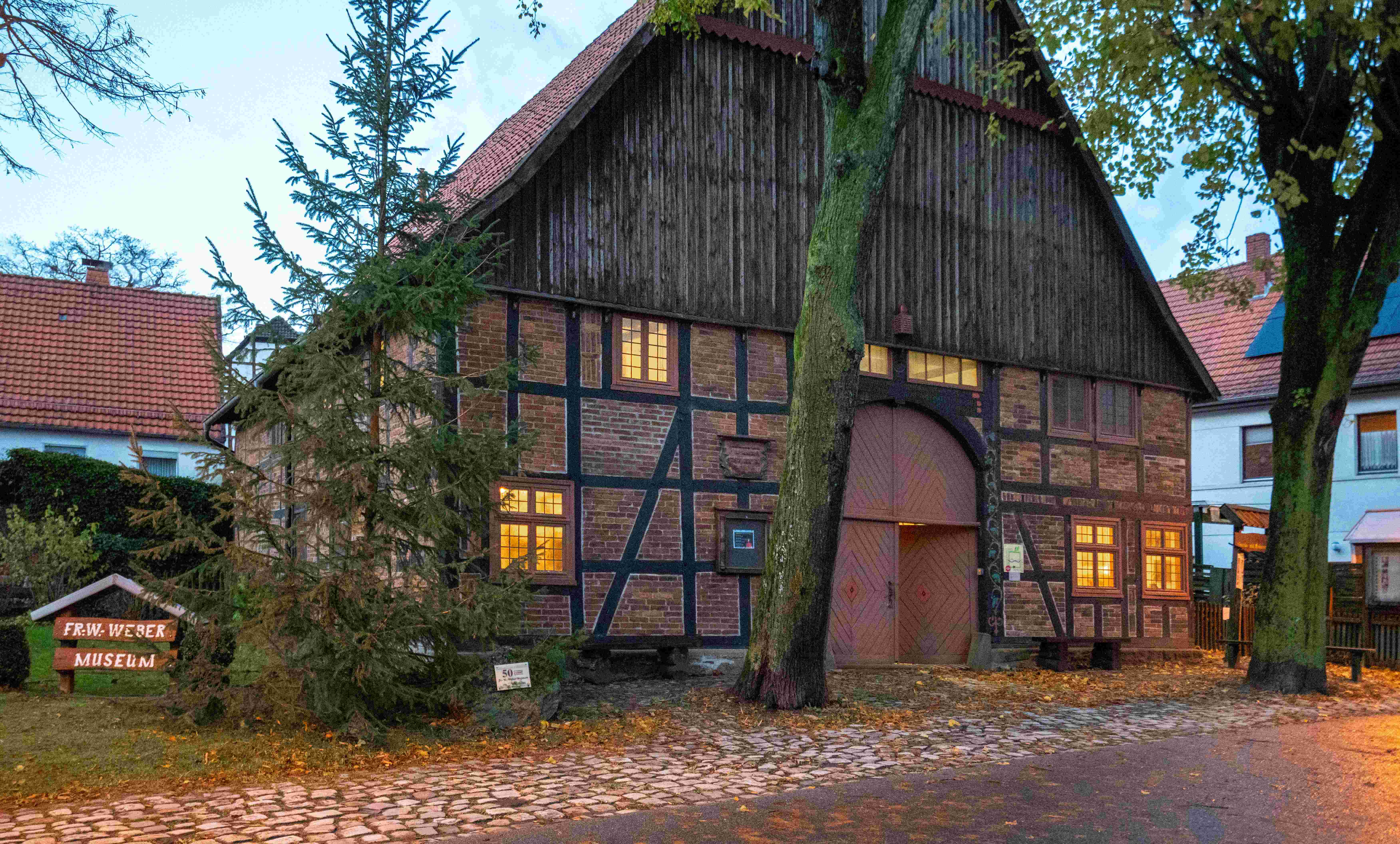 Das denkmalgeschützte Vierständer-Ackerbürgerhaus in der Mitte Alhausens wurde im Jahre 1793 erbaut und von der Familie Weber 1806 erworben. Zum Andenken Friedrich Wilhelm Webers wurde um 1952 eine Vereinigung der Freunde des Dichters gegründet, die später in Friedrich-Wilhelm-Gesellschaft umbenannt wurde, welche als Gedenktstätte das Friedrich-Wilhelm-Weber-Museum einrichtete. Nach der Übernahme des Gebäudes 1973 durch die Stadt Bad Driburg konnte das Museum umfänglich erweitert werden.