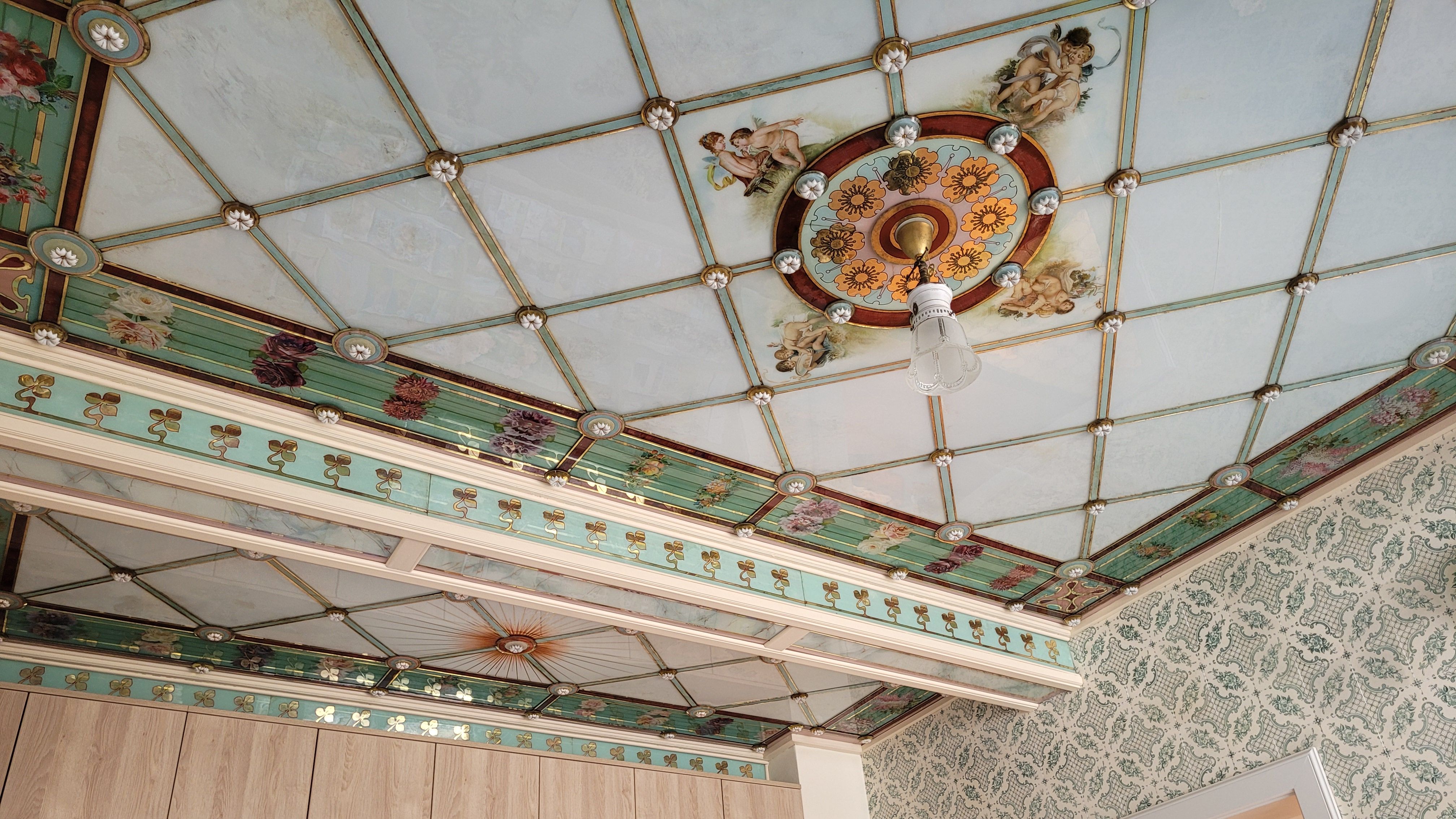 Die Restauratorin Frau Diana Berger-Schmidt ist anwesend. Sie hat die Decke und Fliesen fachgerecht restauriert und gibt daran Einblicke in ihre Arbeit. Weiterhin erläutert sie die Bedeutung des Denkmalschutzes.