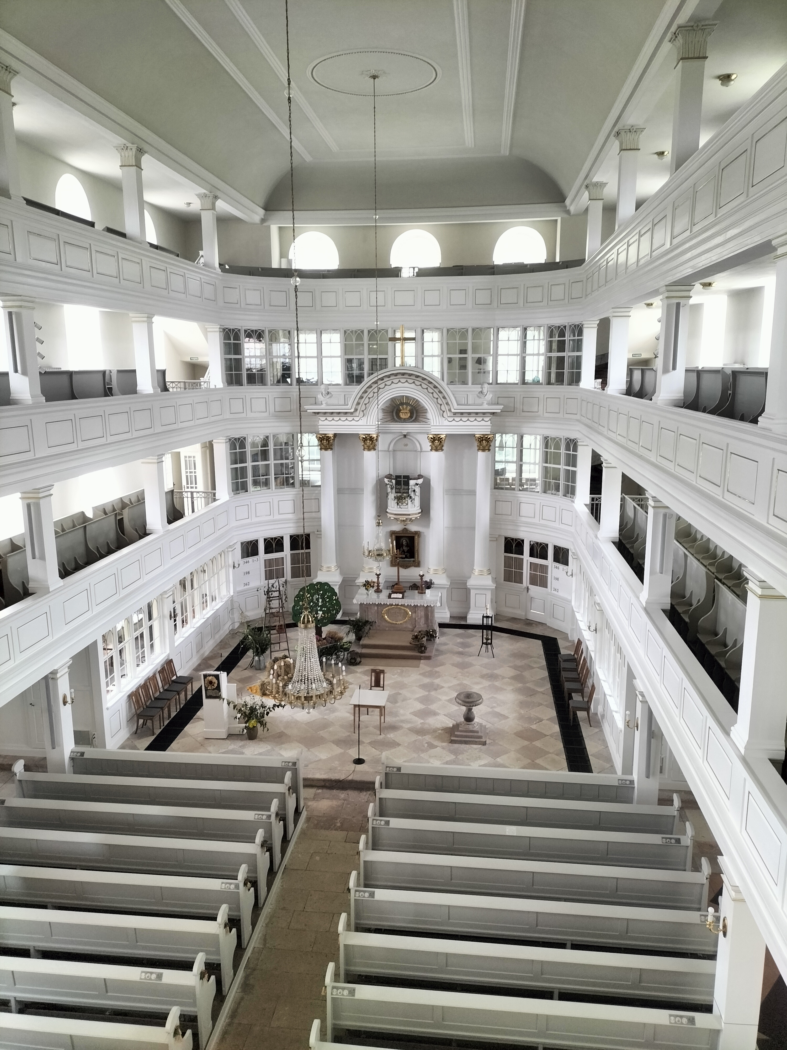 Kirchenbesichtigung, mit einer Fotoausstellung auf der ersten Empore der Kirche