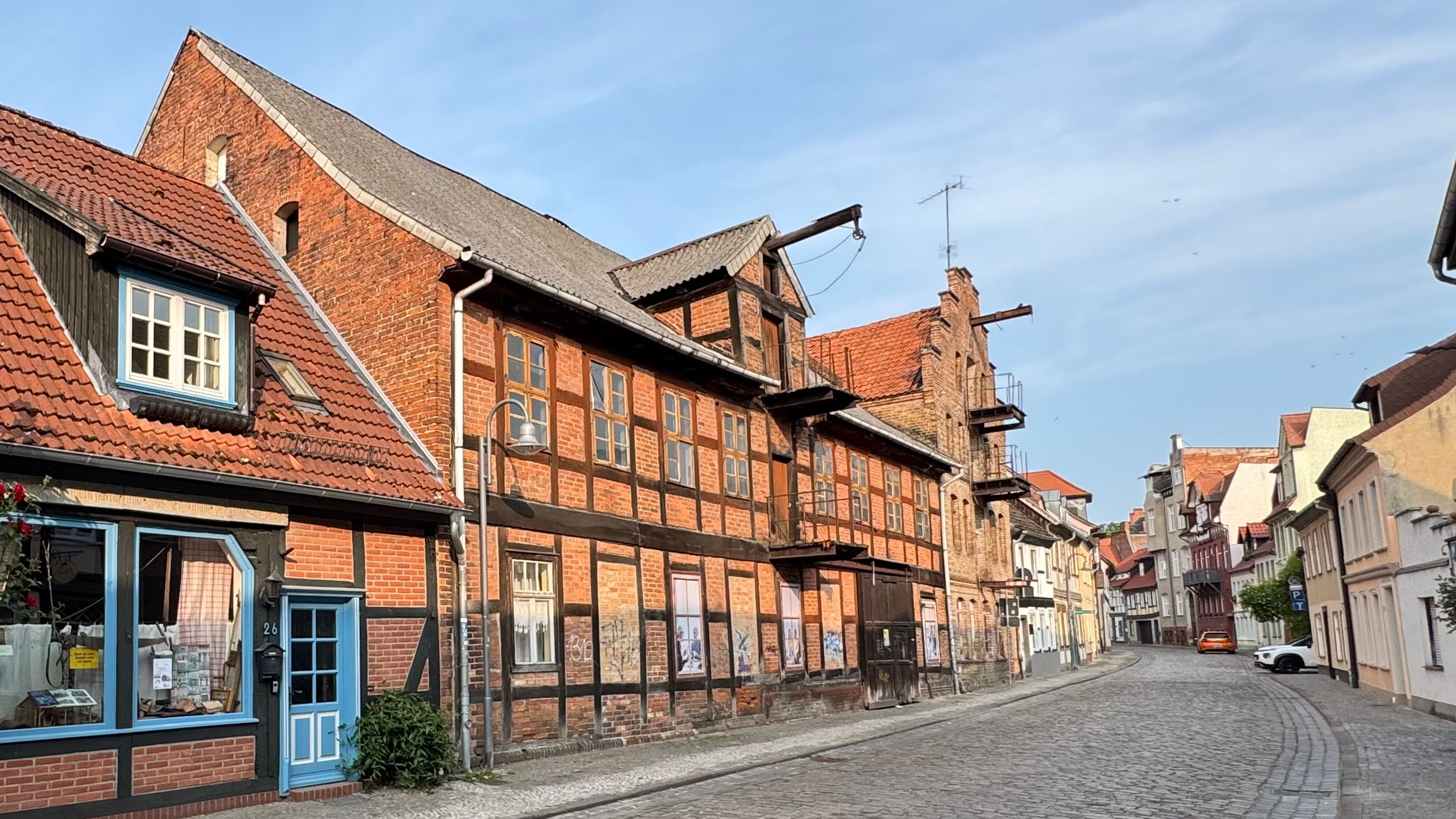 Das ehemalige Speicherhaus aus der ersten Hälfte des 19. Jahrhunderts besteht aus einem Fachwerk- und Ziegelbau mit einem markanten Treppengiebel zur Straße. Aufgrund der Höhe und des Erscheinungsbildes mit den vorhandenen Lastenkragarmen und den Verladebalkonen ist dieses Gebäude prägend für die historische Innenstadt und Zeugnis der aufstrebenden Hansestadt.