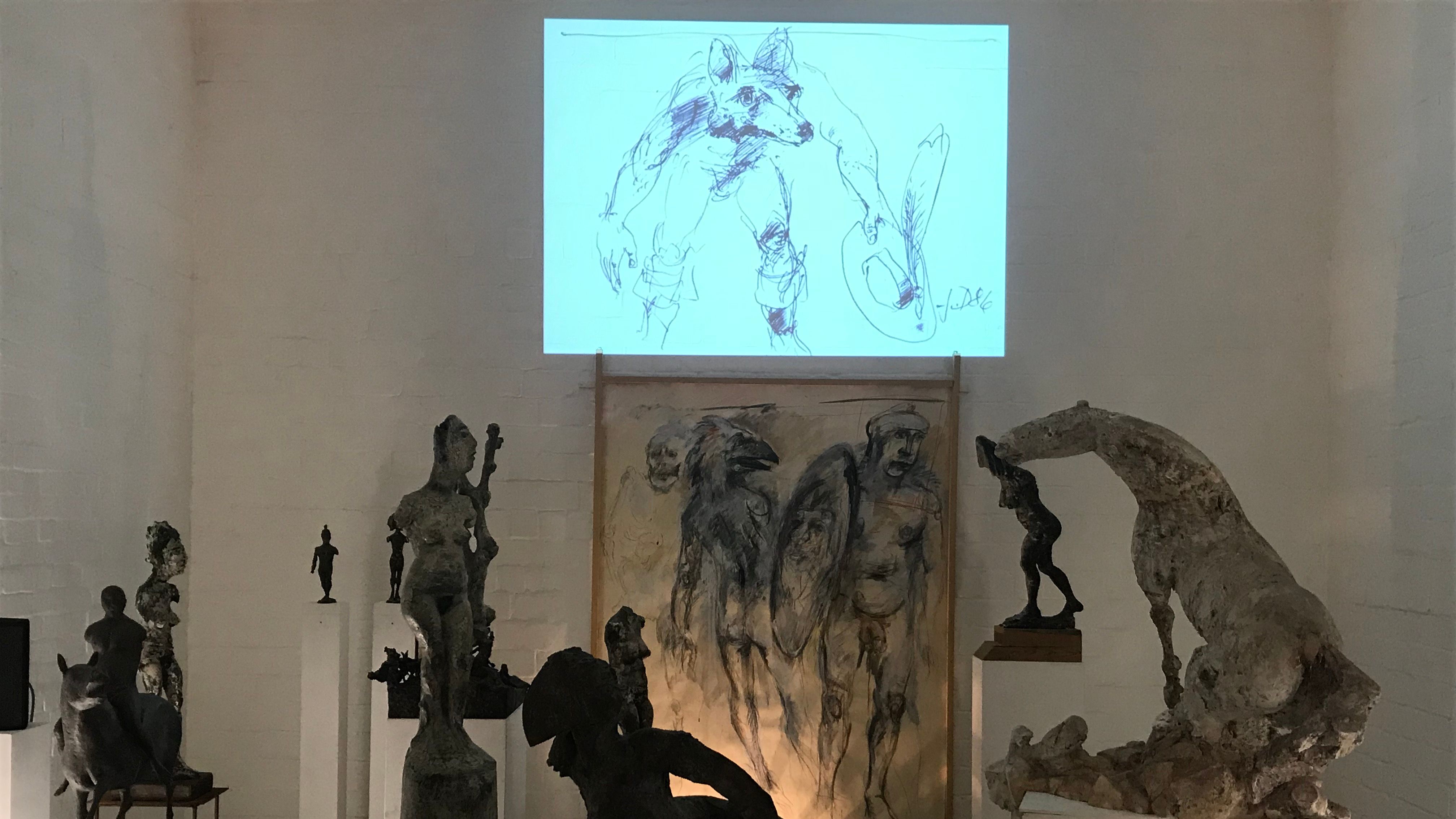 Joachim Dunkel: Animationen als Videovorführung jeweils zur vollen Stunde : 1. 'Minotaurus und Andere' - Handzeichnungen. 2. 'Unter Hohen Tieren' - Handzeichnungen zu Reineke Fuchs. 3. 'Eine Herausforderung' - Stop-Motion.