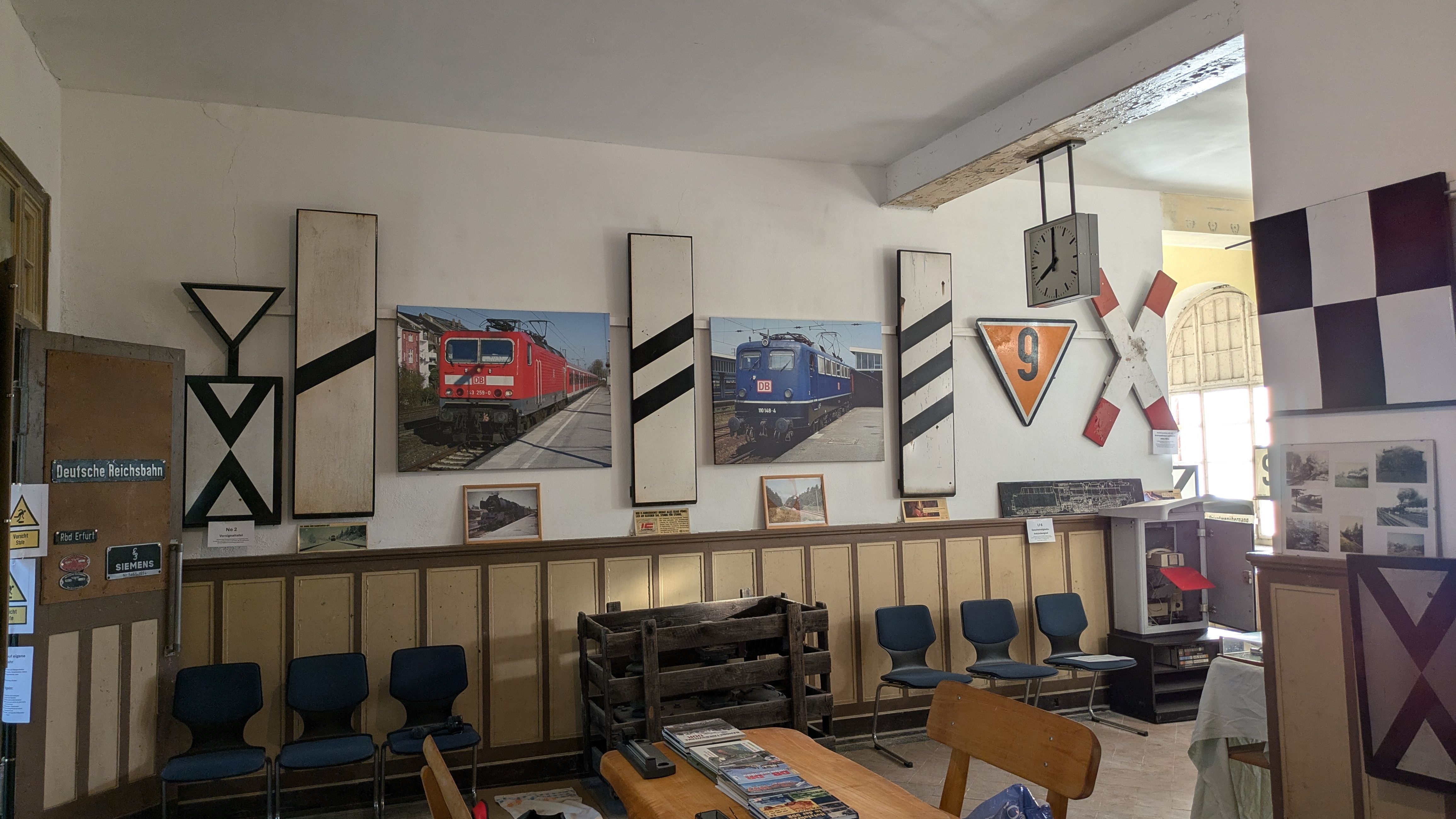 Geschichte des Gebäudes und der Sammlung: Ausstellung und Bildbericht über die Rettung dieses Denkmals sowie museale Ausstellung über die Eisenbahn, insbesondere Signaltechnik.
