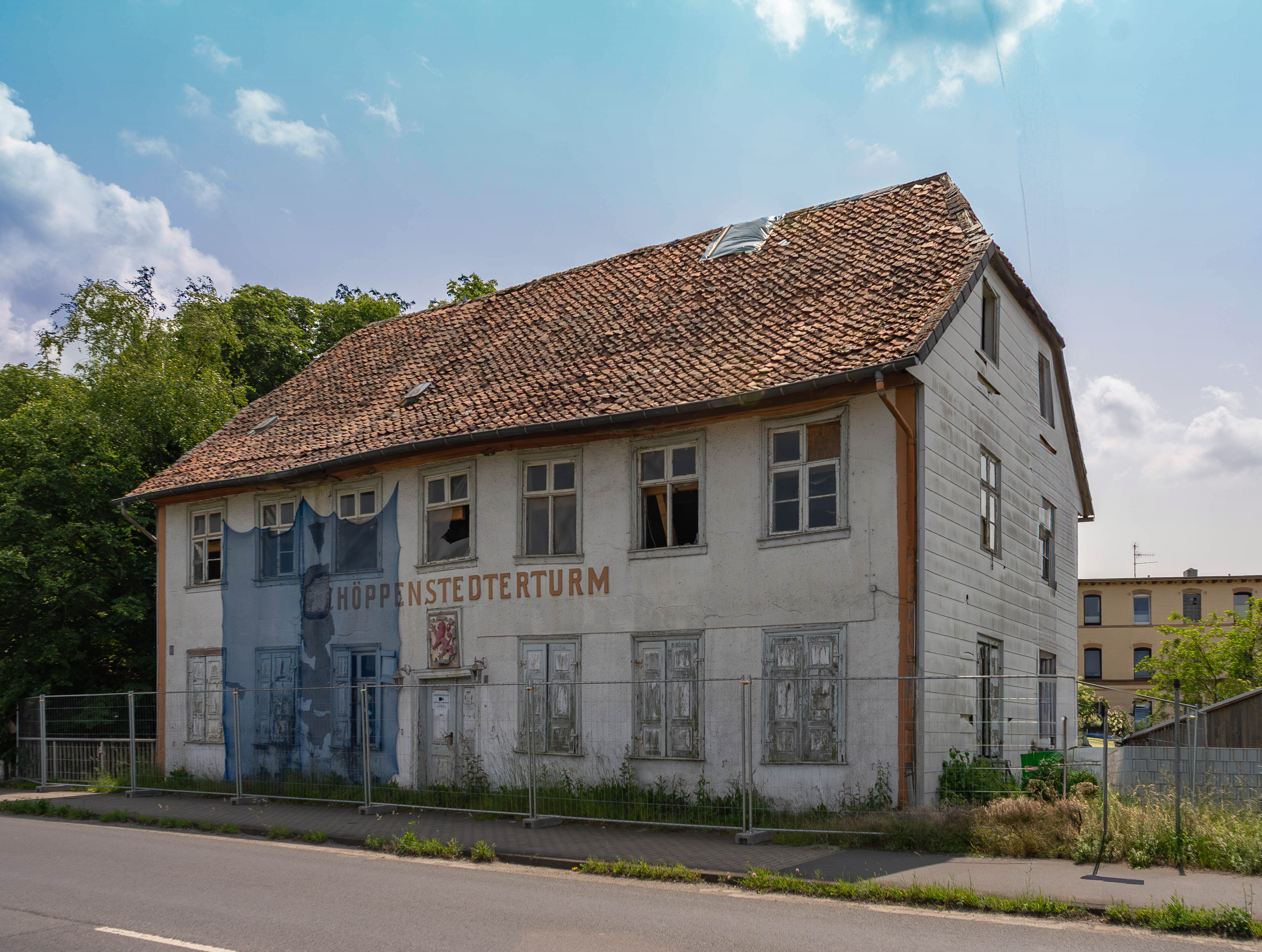 Der Schöppenstedter Turm – Historisches Gasthaus mit Zukunft Das Gasthaus aus dem 18. Jahrhundert ist benannt nach dem früheren Turm der Braunschweiger Landwehr, dem äußeren Verteidigungsring der mittelalterlichen Stadt. Über Jahrhunderte wurde hier eine Schankwirtschaft betrieben, bevor der reguläre Betrieb um 1970 endete. Nun wird das denkmalgeschützte Gebäude saniert und soll künftig mit einem modernen Gastronomiekonzept neu belebt werden.