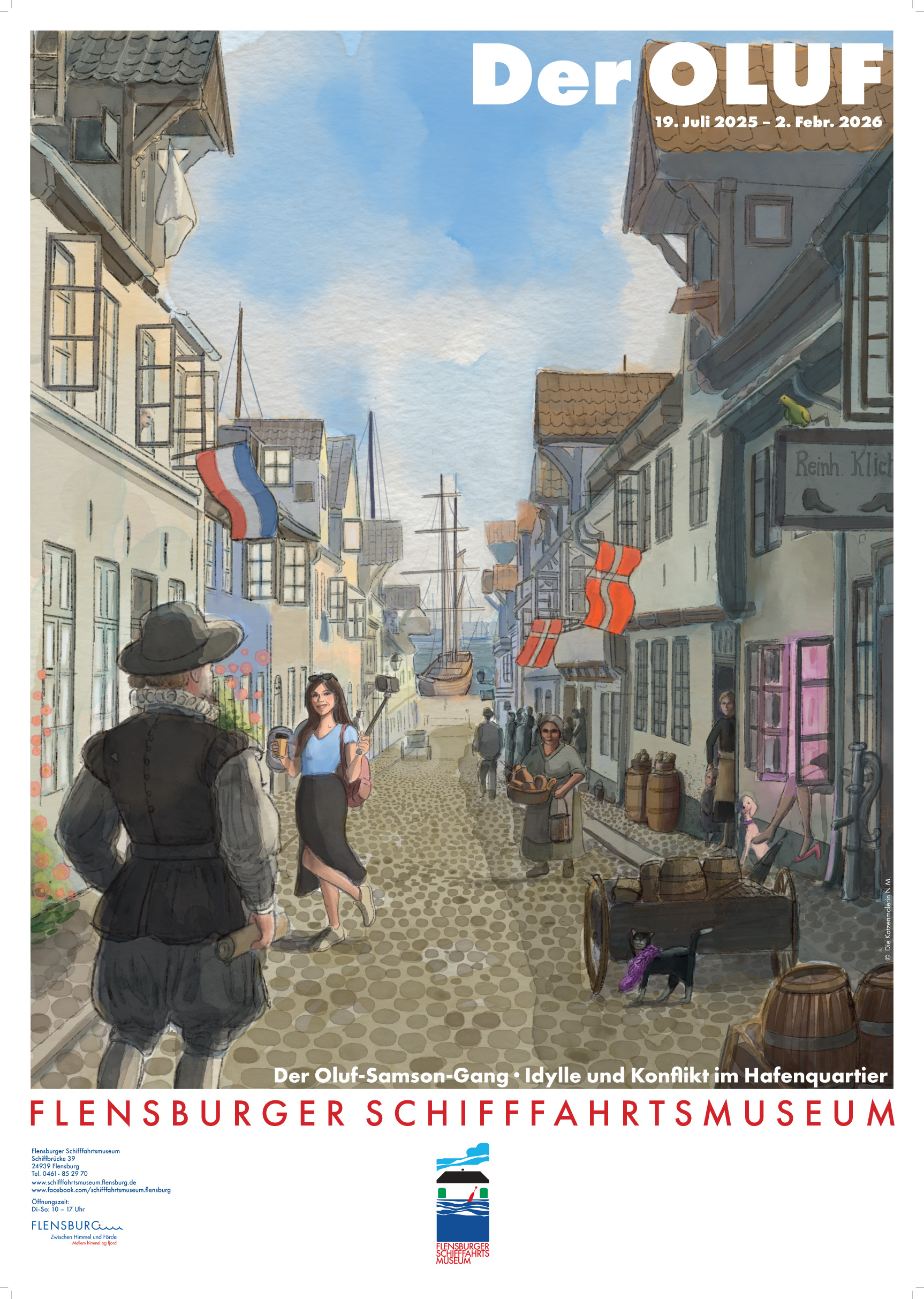 Es werden zwei Führungen durch den Oluf-Samson-Gang mit Besichtigung des Schifferhauses "Onkel Jule" und einem Besuch der Ausstellung zum "Oluf" im Schifffahrtsmuseum angeboten. Die Führungen beginnen um 12.00 Uhr und um 14.00 Uhr an der Ecke Norderstraße/Oluf-Samson-Gang (gegenüber von der Dänischen Zentralbibliothek) und werden von Eiko Wenzel, Untere Denkmalschutzbehörde, geleitet. Es wird über die interessante Sozialgeschichte der Straße - von der Straße der Schiffer über die Straße der Arbeiter bis hin zur Bordellgasse - informiert und über die Baugeschichte und die Sanierung der Häuser berichtet. Von innen besichtigt werden kann nur das im Umbau befindliche Schifferhaus Schiffbrücke 29 (ehem. Hafenkneipe Onkel "Jule" (dortige Führung durch Peter Andresen, Untere Denkmalschutzbehörde). Im Anschluss erfolgt ein Besuch des Schifffahrtsmuseum, dort wird die Ausstellung zum Oluf-Samson-Gang erläutert.