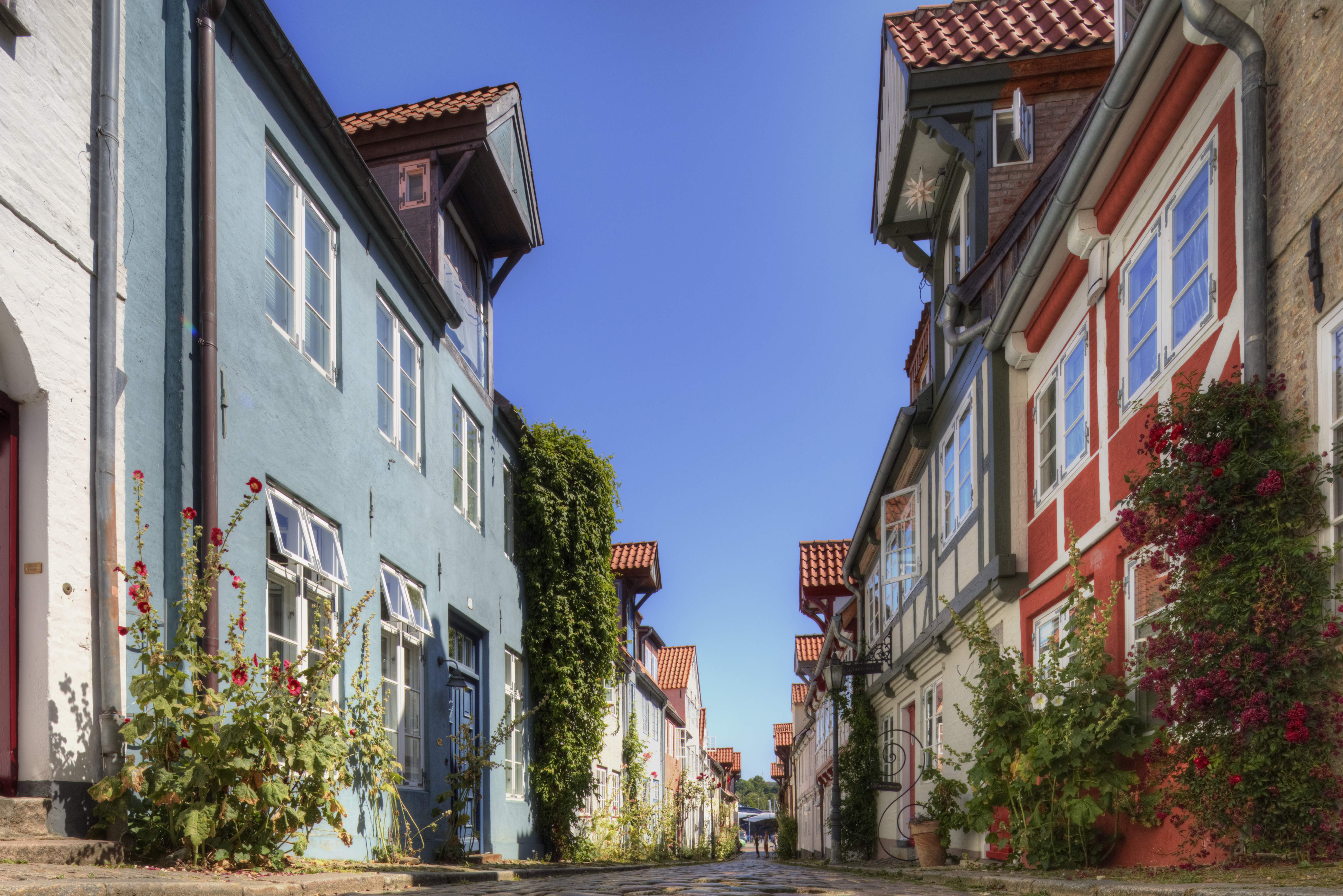 Das einzigartige Ensemble einer Hafengasse entstand um 1600, als der Kaufmann Oluf Samson auf seinem Grundstück Wohnbuden errichtete. Im 18. Jahrhundert war der "Oluf" die Straße der Kapitäne und Schiffer, im 19. Jahrhundert wohnten hier Handwerker und Arbeiter. Seit dem Ersten Weltkrieg breitete sich die Prostitution im Gang aus - bis 2015 ist der "Oluf" Bordellgasse. Alle 27 denkmalgeschützten Häuser wurden in den letzten Jahren saniert, sie erzählen die wechselvolle Geschichte der Straße.