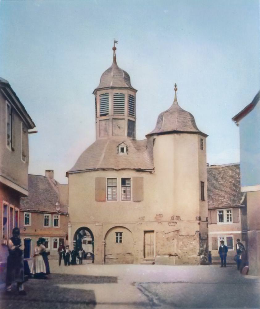Das Hugenottenrathaus wurde 1702 im Rahmen der Stadtgründung von Neu-Isenburg als Flüchtlingssiedlung von Graf Johann Philipp zu Ysenburg errichtet und der Hugenottengemeinde per Testament nach dem Tode des Grafen übertragen, damit die Siedler dort ihre Angelegenheiten in Selbstverwaltung regeln können. Das heutige Wahrzeichen der Stadt wurde 1876 wegen dem aufkommenden Nationalismus abgerissen. Seitdem ist der Marktplatz ein leerer Platz ohne "Point de View".