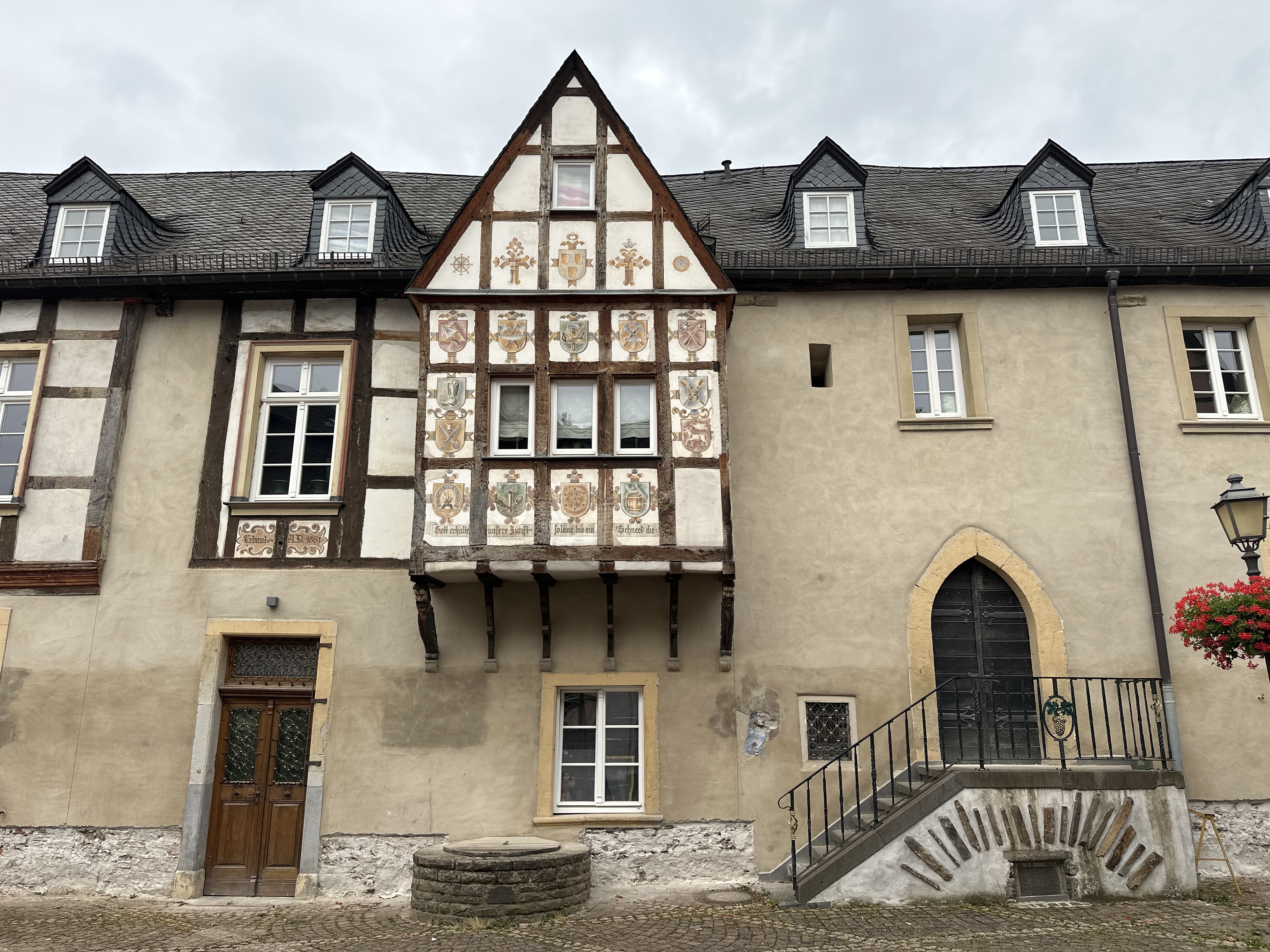Der Deutsche Hof war ein Lehen der Abtei Prüm und ist bereits für das 14. Jahrhundert bezeugt. Neueste dendrochronologische Untersuchungen lassen sogar vermuten, dass die Bauzeit des ältesten Gebäudeteils bereits um 1274/75 liegt. Er ist einer von zwei ehemaligen Adelshöfe, die es heute noch in Ahrweiler gibt. Als eines von zehn Gebäuden innerhalb der Stadtmauer von Ahrweiler hat der Deutsche Hof den Stadtbrand von Ahrweiler am 1./2. Mai 1689 überstanden.