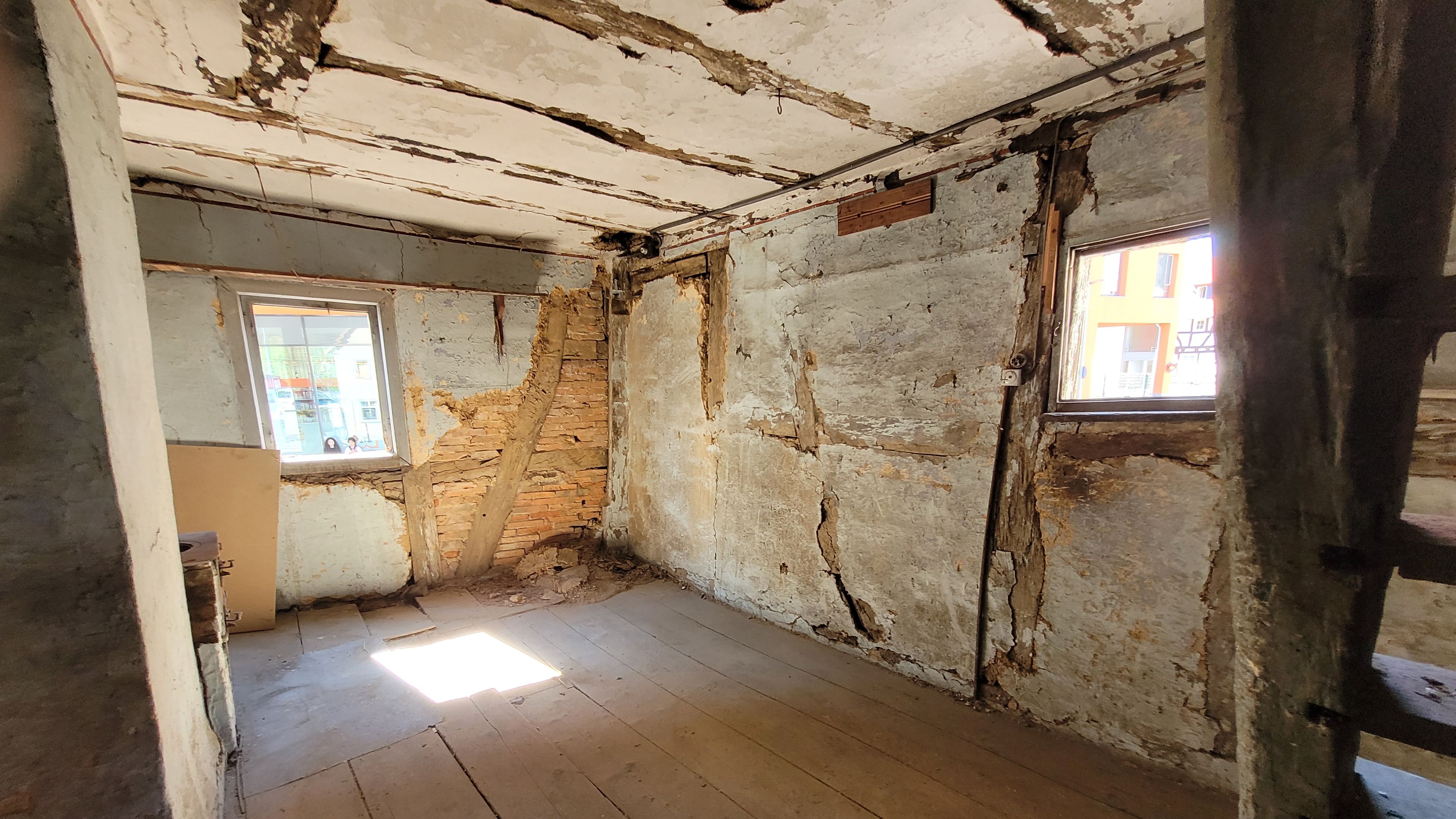 Das „Gespensterhaus“ öffnet seine Türen! Nach jahrzehntelangem Leerstand und mit begonnener Sanierung kann das historische Fachwerkhaus nun auch von innen besichtigt werden. Erfahren Sie mehr über die spannende Geschichte und die Herausforderungen der Fachwerksanierung. Wir freuen uns auf Ihren Besuch! Leider können noch keine Bauarbeiten gezeigt werden - die Genehmigungsverfahren dauern noch länger als erwartet.