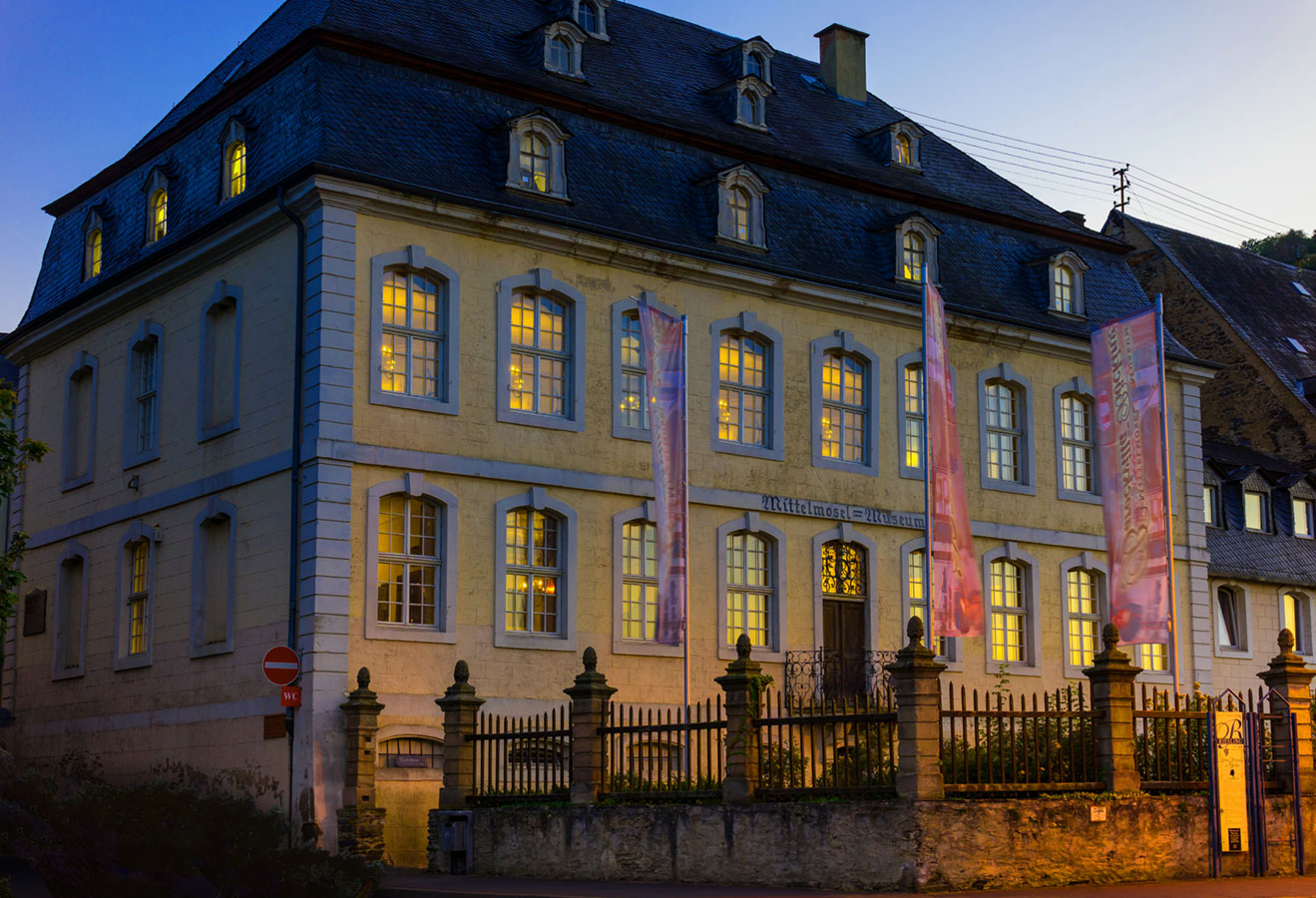 Schon Goethe, der preußische König Friedrich-Wilhelm IV. und der französische Dichter Apollinaire waren Gast in der stattlichen Barockvilla der Trarbacher Kaufmannsfamilie Böcking, in der heute das Mittelmosel-Museum untergebracht ist. Das prächtige Patrizierhaus wurde um 1750 von dem reichen Kaufmann und Landeskassierer Johann Adolf Böcking erbaut und präsentiert auch heute noch den Wohnstil einer wohlhabenden Patrizierfamilie des 18. und 19. Jahrhunderts.