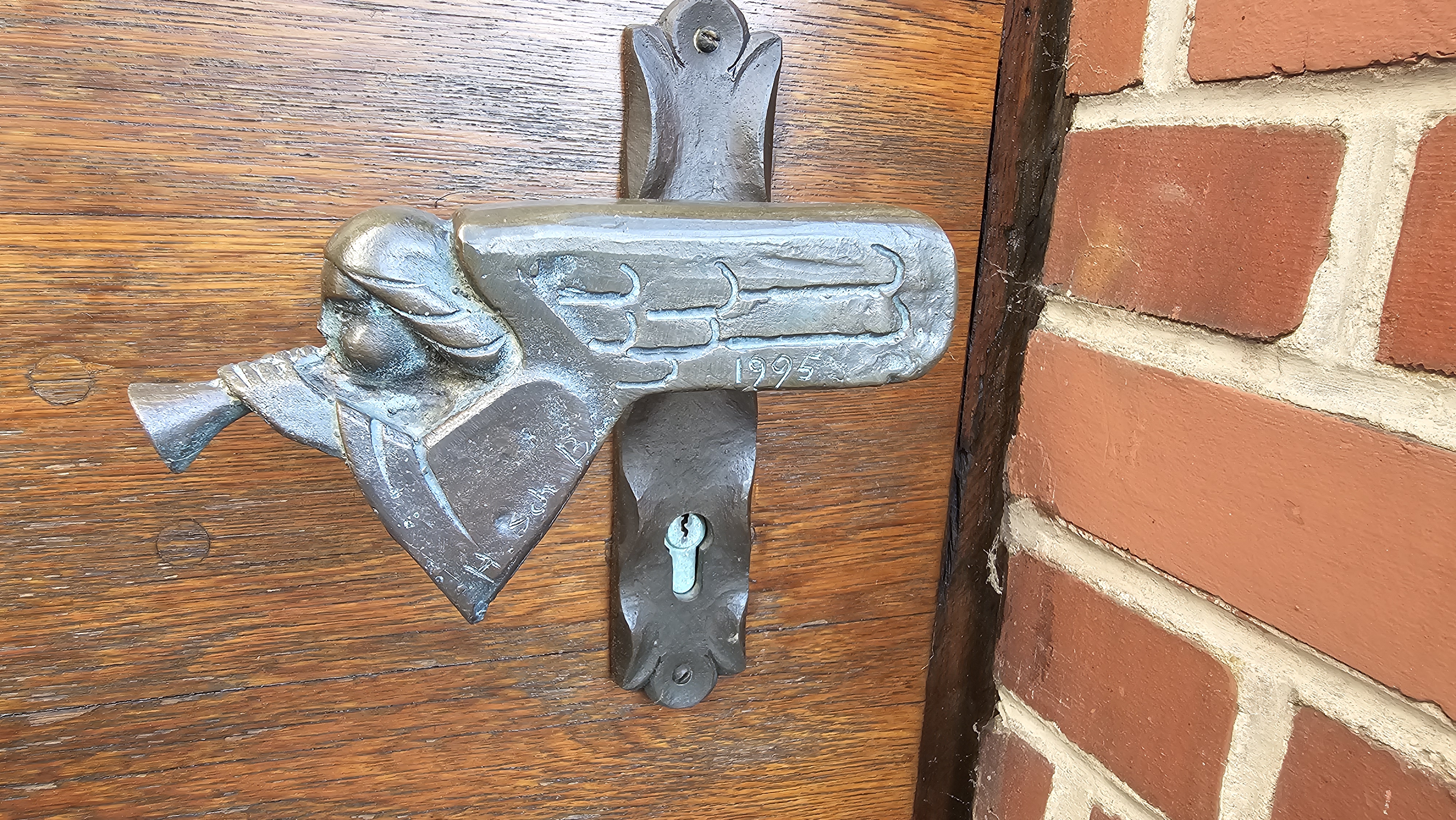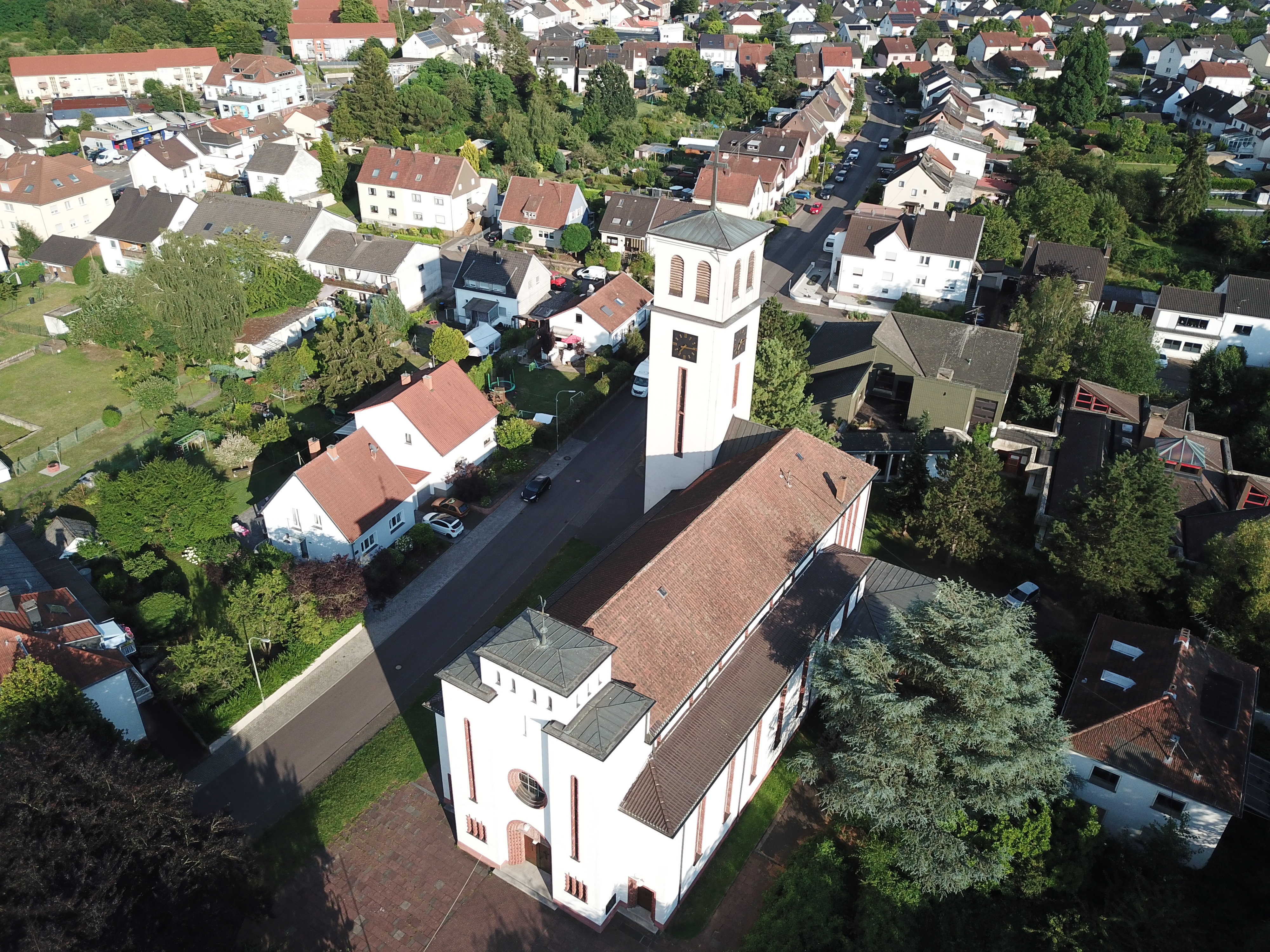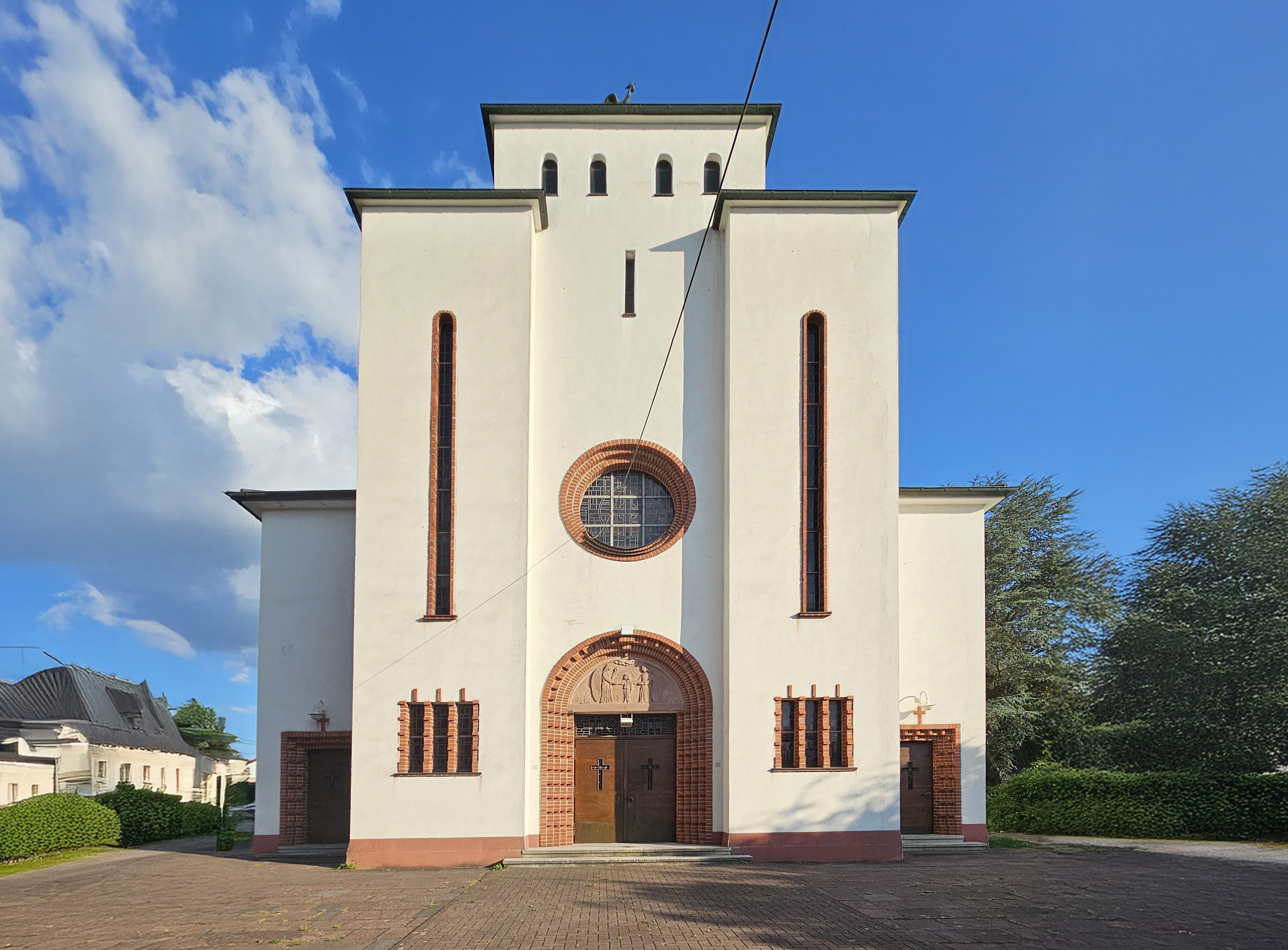 Die Kirche zu den Heiligen Schutzengeln wurde 1933-34 im modernen Stil der Neuen Sachlichkeit erbaut. Ihre Besonderheit liegt vor allem in der Baukonstruktion: Der Stahlskelettbau wurde als Längsbinderkirche errichtet, die als Raumidee im Kontext der liturgischen Reformbewegung einen stützenfreien, aber dennoch basilikalen Sakralraum ermöglichte. Gehäuft trat diese innovative Bauweise ab Ende der 20er Jahre in industriell geprägten Regionen auf, in denen einerseits ein starkes Bevölkerungswachstum neue Kirchen erforderte, andererseits Stahl und stahlverarbeitende Unternehmen günstig und in der Nähe verfügbar waren. Weitere Besonderheiten der Schutzengelkirche sind die Glasfenster der 50er Jahre mit Engelsmotiven von F.X.W. Braunmiller sowie künstlerische Ausstattungsteile von Ernst Alt.