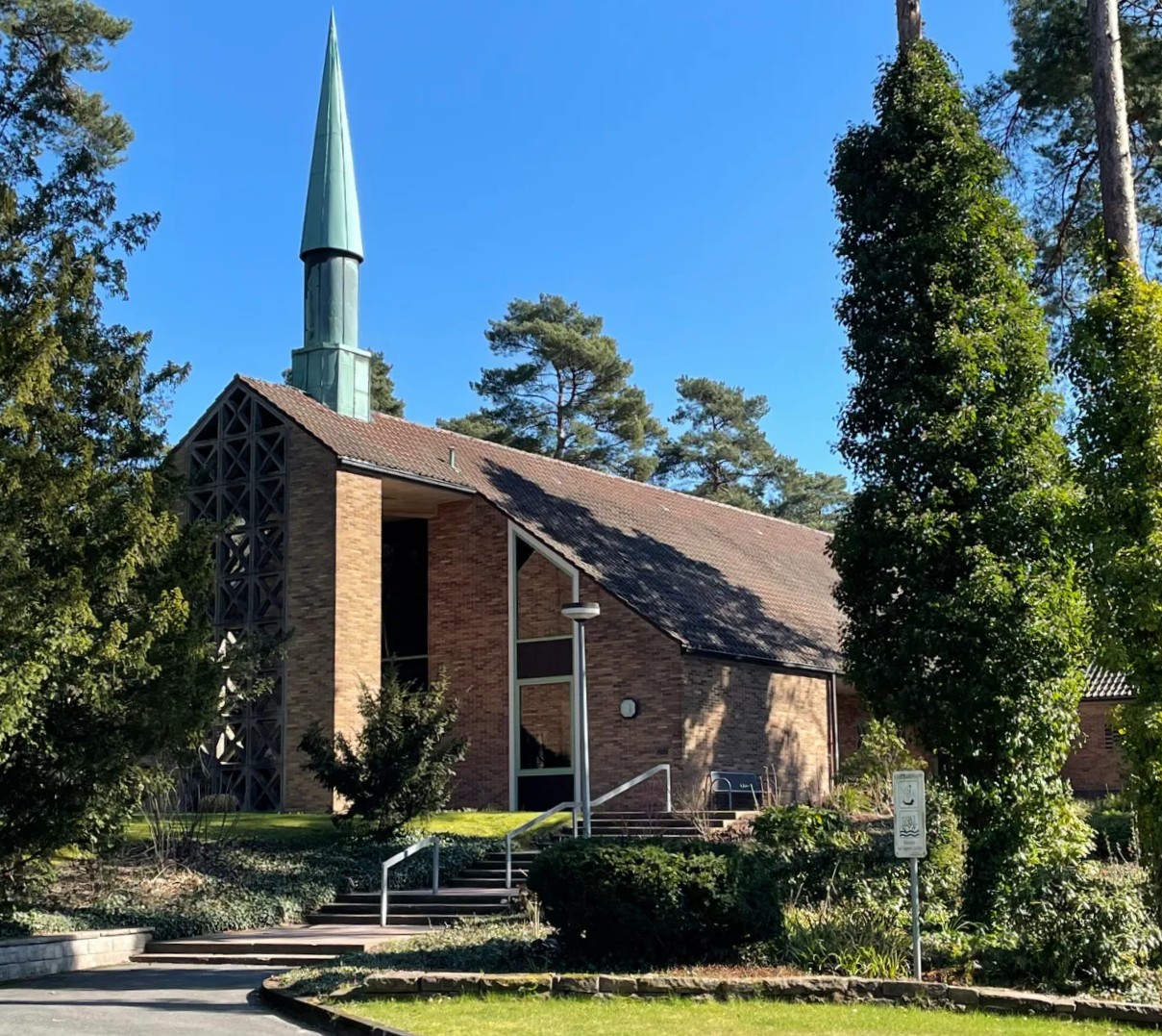 Da sich die Neue Kapelle auf dem Gelände des Sennefriedhofes befindet, stehen Parkplätze nicht unmittelbar vor dem Gebäude zur Verfügung. Parkplätze befinden sich am Friedhofseingang (Windelsbleicher Straße 139 a, 33647 Bielefeld).