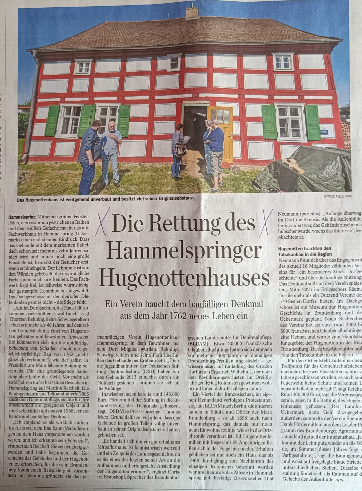 Hugenottenhaus, ein in der westlichen Uckermark gelegenes Fachwerkbauernhaus, 1,5 geschossig, sog. Ernhaus (1762d). Wurde von Nachfolgern der ersten hugenottischen Ansiedlung Anfang des 18. Jahrhunderts bis 1986 bewohnt. Fast originaler Zustand mit Schwarzer Küche, Wandkamin und Mantelschornstein im DG. Das Gebäude wurde inzwischen von einem gemeinnützigen Verein saniert und steht einer öffentlichen Nutzung zur Verfügung.