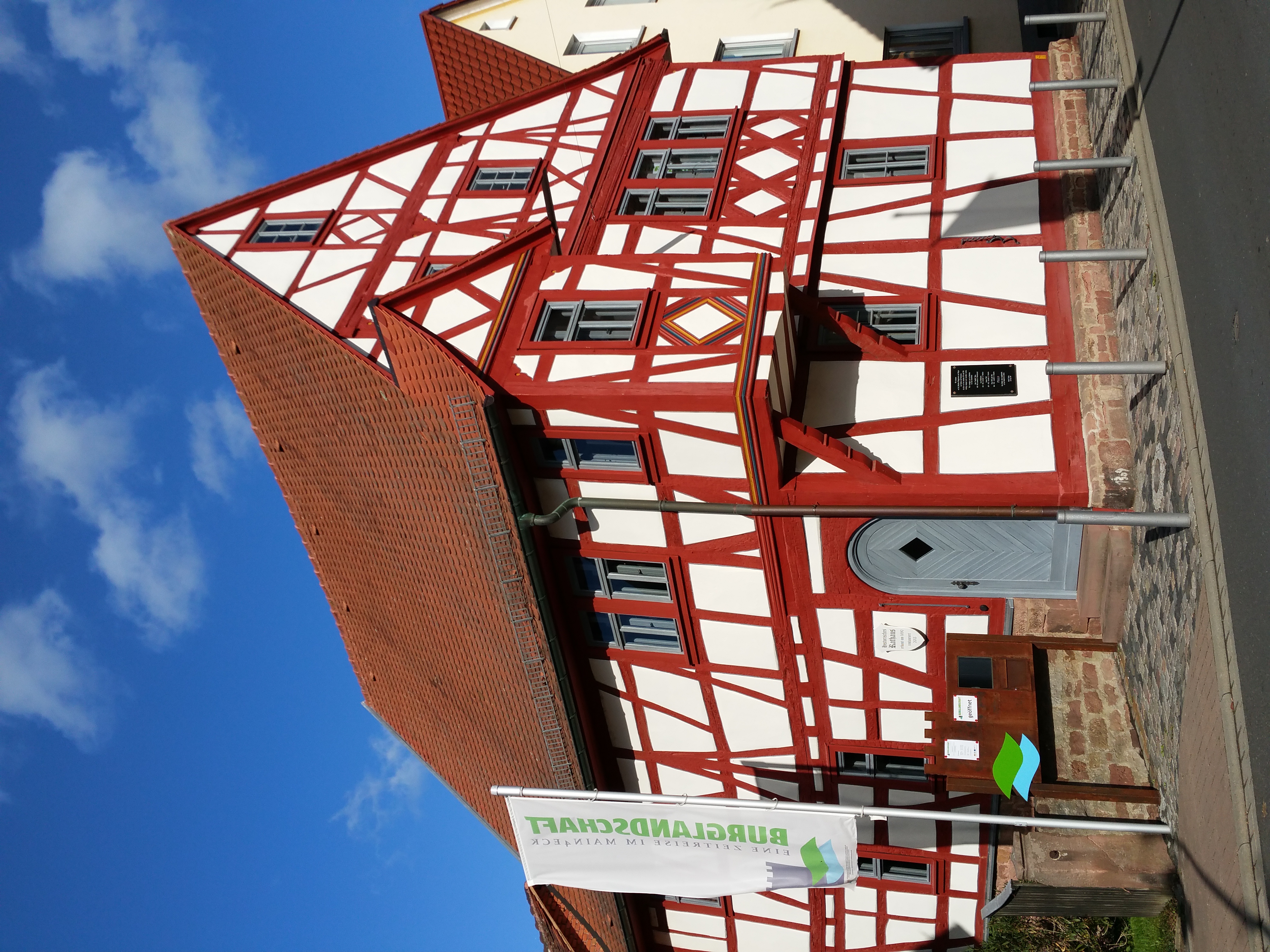 Das denkmalgeschützte Gebäude wurde im 17. Jh. direkt am Marktplatz errichtet und beeindruckt durch sein rotfarbiges Fachwerk. Es wurde vom Markt Eschau umfassend saniert und beherbergt seit 2014 die Projekträume und Büros des Burgen- und Schlössernetzwerks „Burglandschaft e. V.“. Mit dem Bildungs- und Informationszentrum Burglandschaft (BIB) im Historischen Rathaus in Eschau hat der Verein seinen Sitz im Zentrum seiner Gebietskulisse.