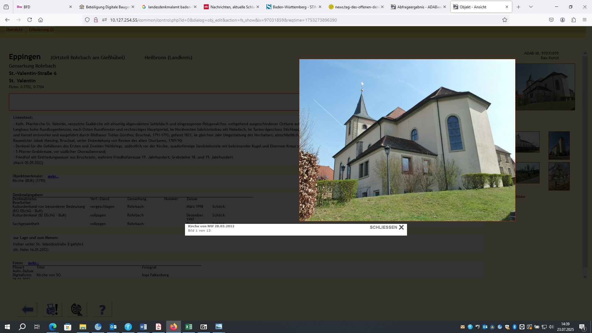 Verputzte Saalkirche mit Polygonalchor, am Chor und Langhaus hohe Rundbogenfenster, nach Osten Rundfenster und rechteckiges Hauptportal, im Nordwesten Sakristeianbau mit Walmdach, im Turmerdgeschoss Stichkappengewölbe, im Inneren flache Hohlkehlendecke, Emporeneinbau auf farbigen Stuckmarmorsäulen, Altäre und Kanzel 1791-93, gefasst 1821. Im gleichen Jahr Umgestaltung des Hochaltars, einschließlich weiterer historischer Ausstattung, unter Einbeziehung von Resten des alten Chorturms, 1789/90.