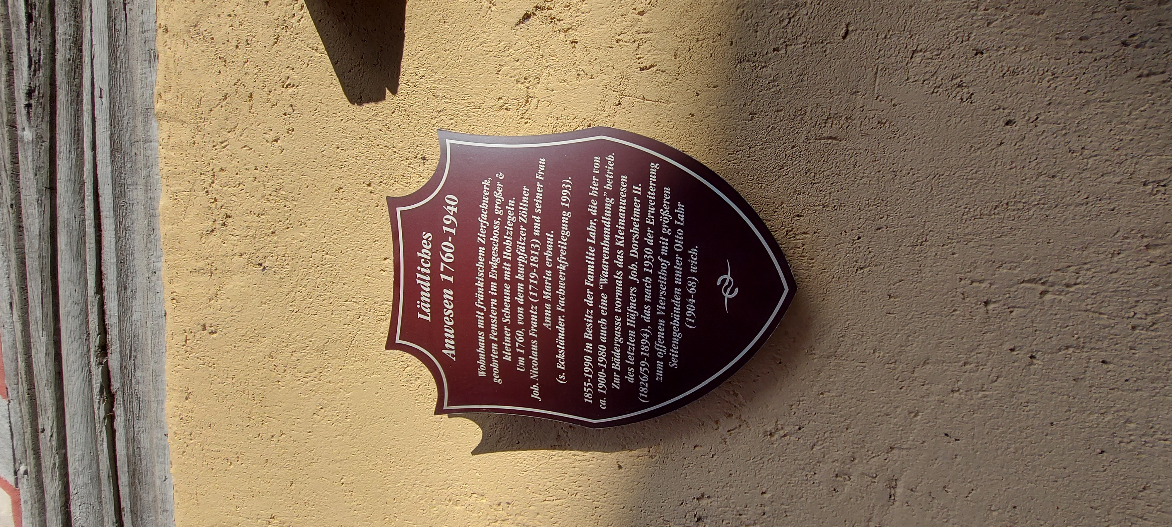 Die Hofreite, ein offener Vierseithof mit Zierfachwerk, wurde ursprünglich 1760 erbaut und ursprünglich als landwirtschaftlicher Kleinbetrieb und Krämerladen genutzt. Erhalten sind Haus, Scheune, Stallungen für Groß- und Kleintiere und ein gepflasterter Innenhof sowie eine Ziergartenfläche zur Straßenfront. Mitglied der IG Bauernhaus.