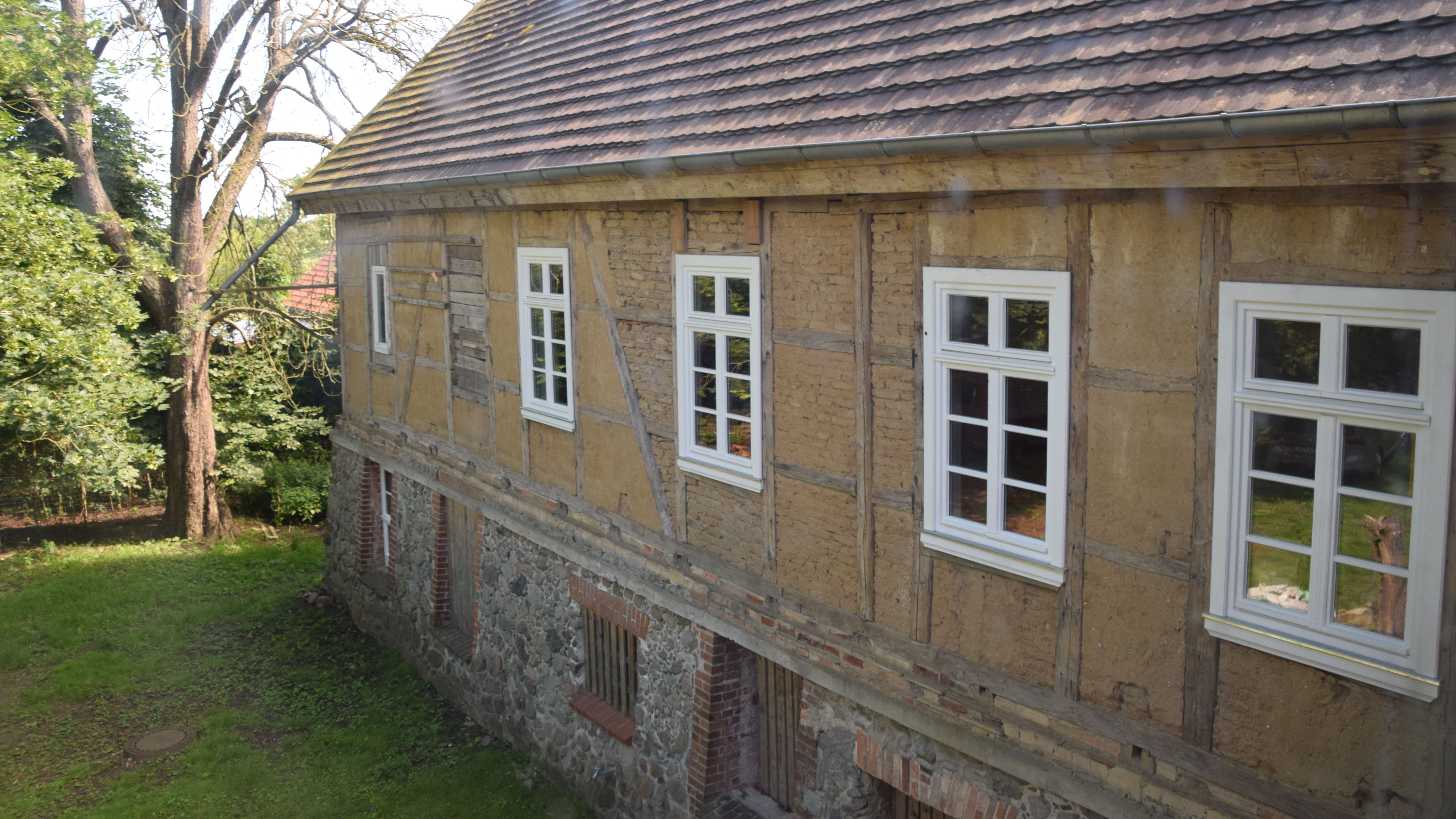 Der Weg zum Haus führt über die Allee des Jahres 2019 - eine Kastanienallee mit Kopfsteinpflaster. Das Gutshaus diente einst der Familie von Lützow als Familiensitz. In den 1990er Jahren wurde der Film "Das Geheimnis der Kormoraninsel" hier gedreht. Ein geschichtsträchtiger und geheimnisvoller Ort im Warnow Durchbruchstal wird wieder aus seinem Dornröschenschlaf erweckt. Lehmkurse finden jährlich statt. Sie können sich zum Subbotnik anmelden o. die Fortschritte der Arbeiten begutachten.