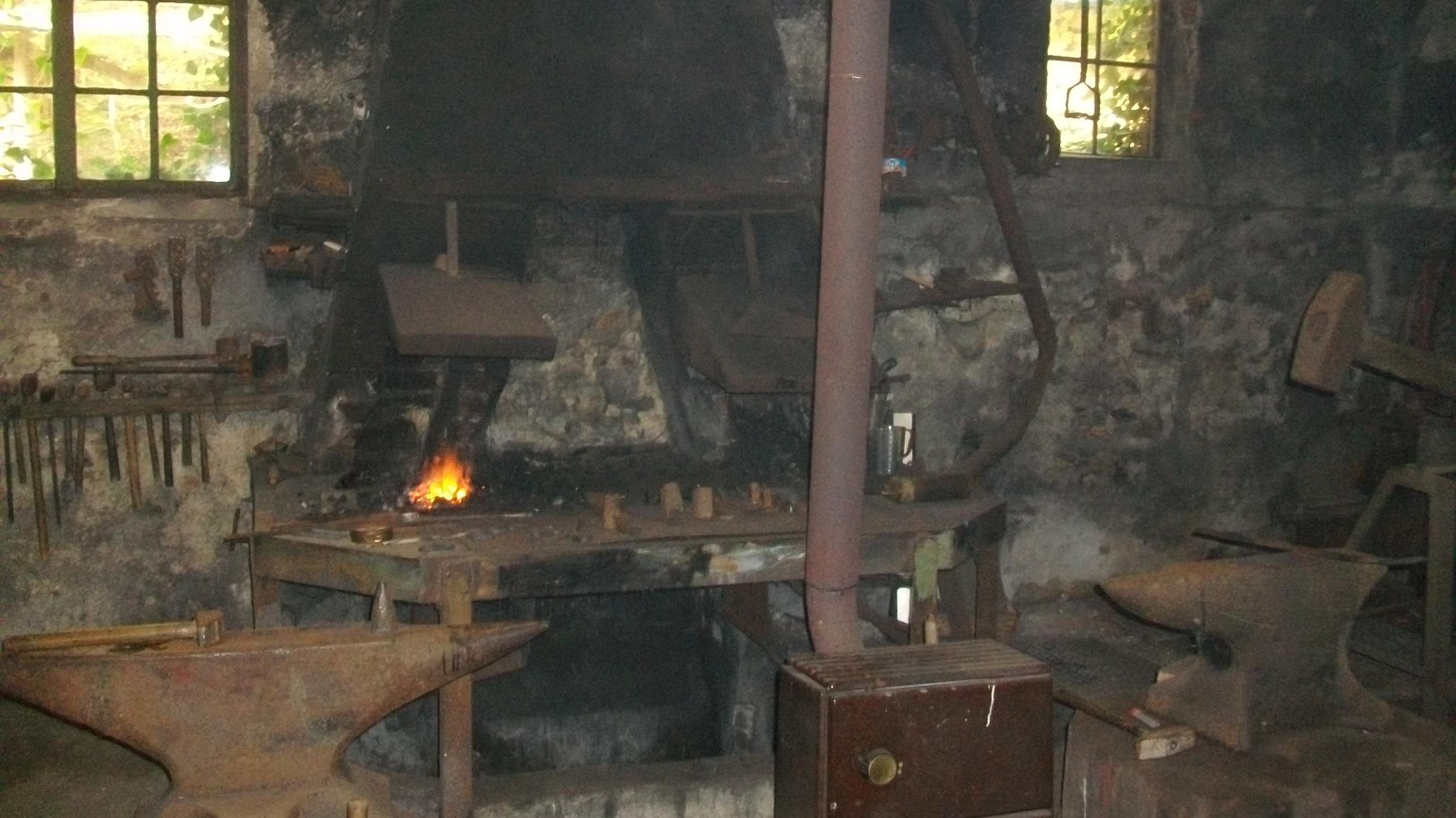 Schmiedevorführung mit Wilfried Kirchner in der alten Schmiedewerkstatt. Offene Führungen; Rundgang um 14:00 Uhr.