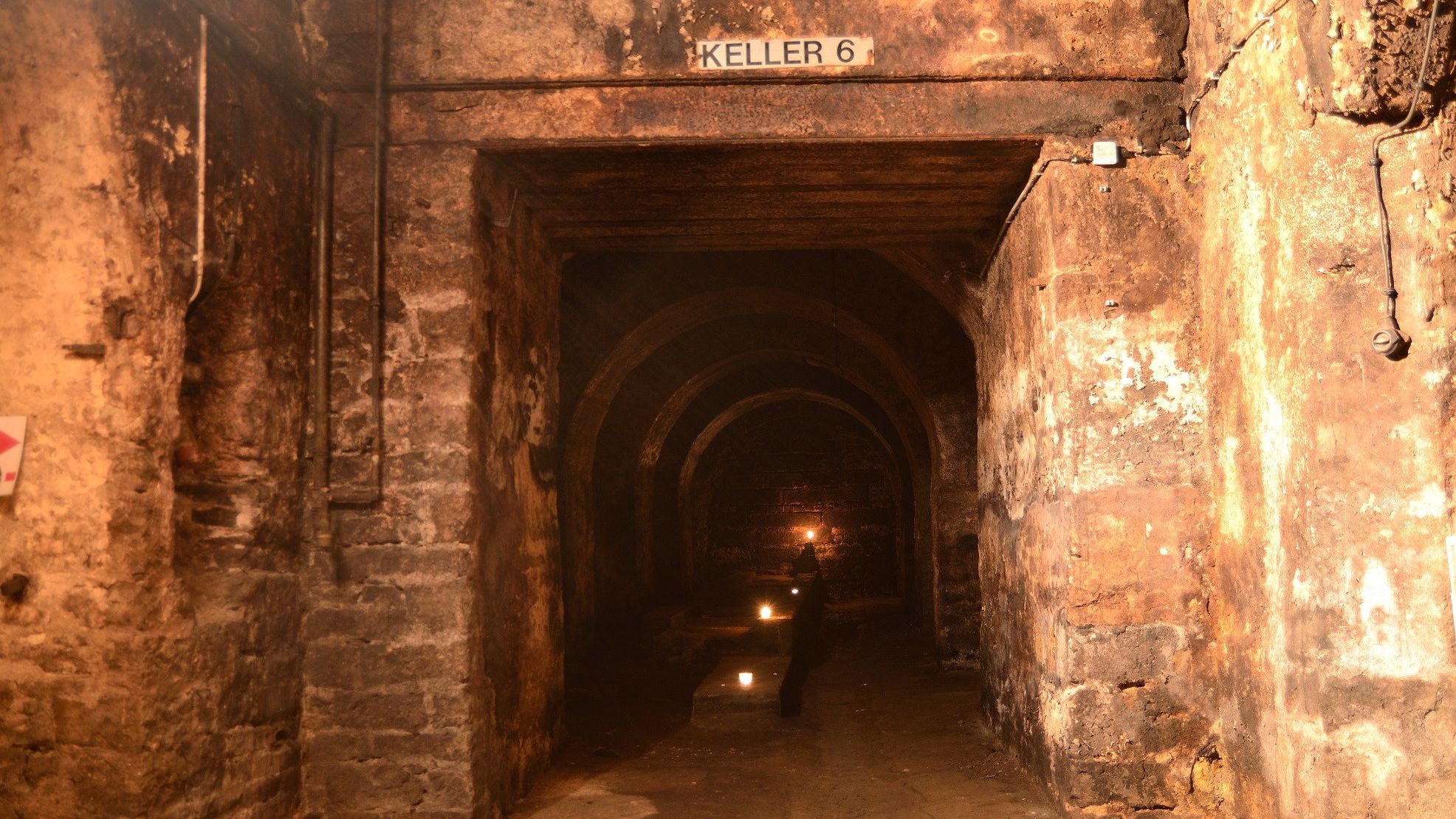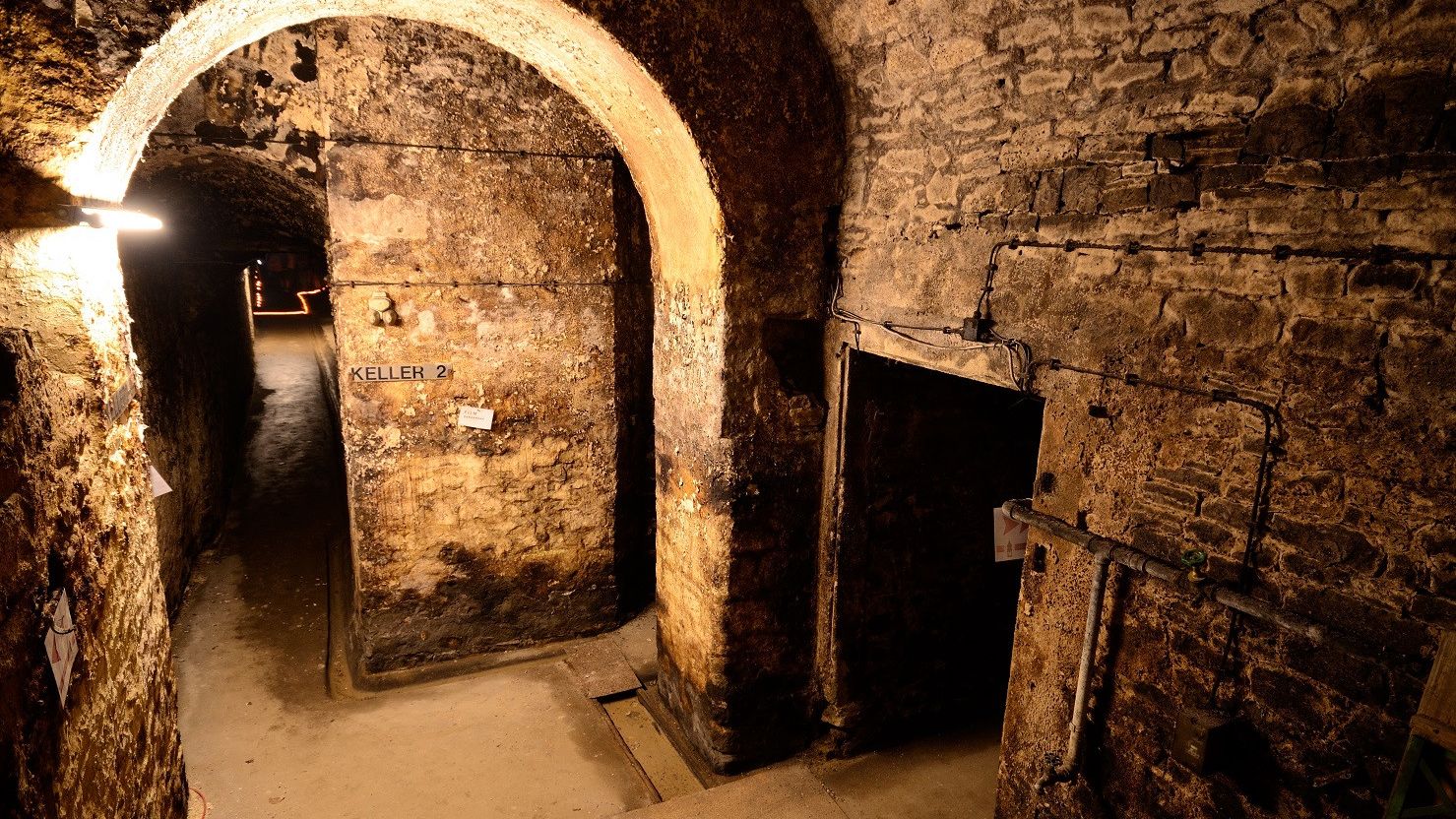 Weiträumige Gewölbekelleranlage des 18. und 19. Jhs. Mehrere Hauptkeller durch eine Vielzahl von Gängen verbunden. Bestandteil des im II. Weltkrieg zerstörten Deuster-Schlosses. Bierkeller, Luftschutzräume, Schützenkeller.