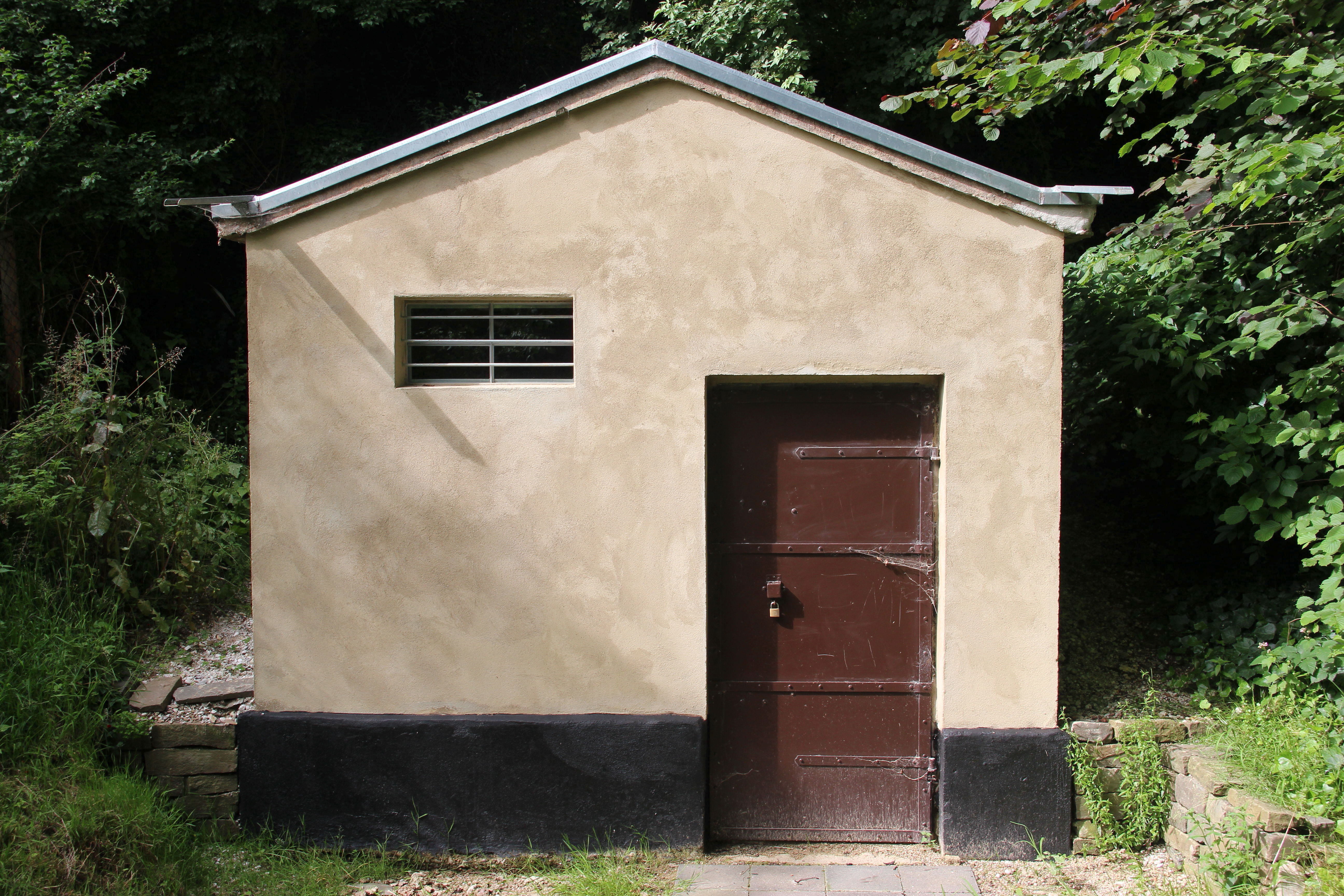 Pumpenhäuschen im Broichpark und Wasserbehälter am Kuckstein